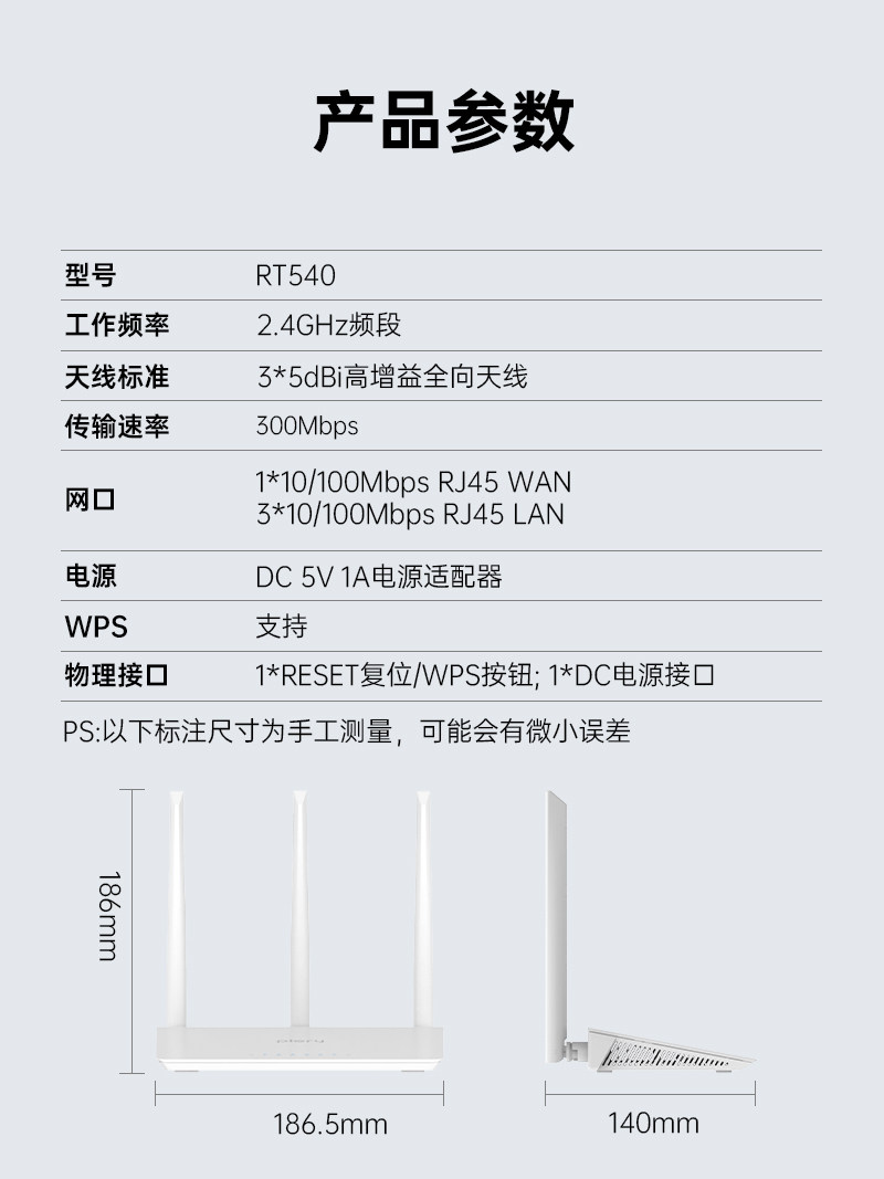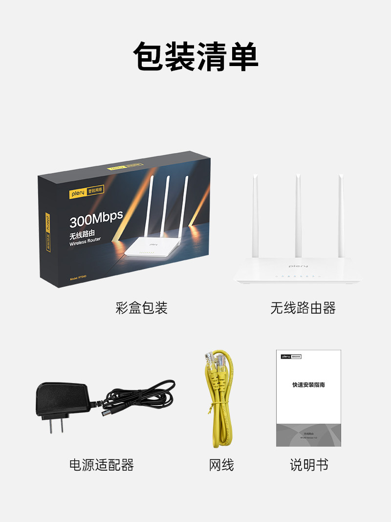 Plery Rt540 Home High-Speed Wireless Router 300m Wall-Penetrating High-Power Student Dormitory Rental Home Broadband Router (Can Be Used as a Wifi Repeater or Amplifier)