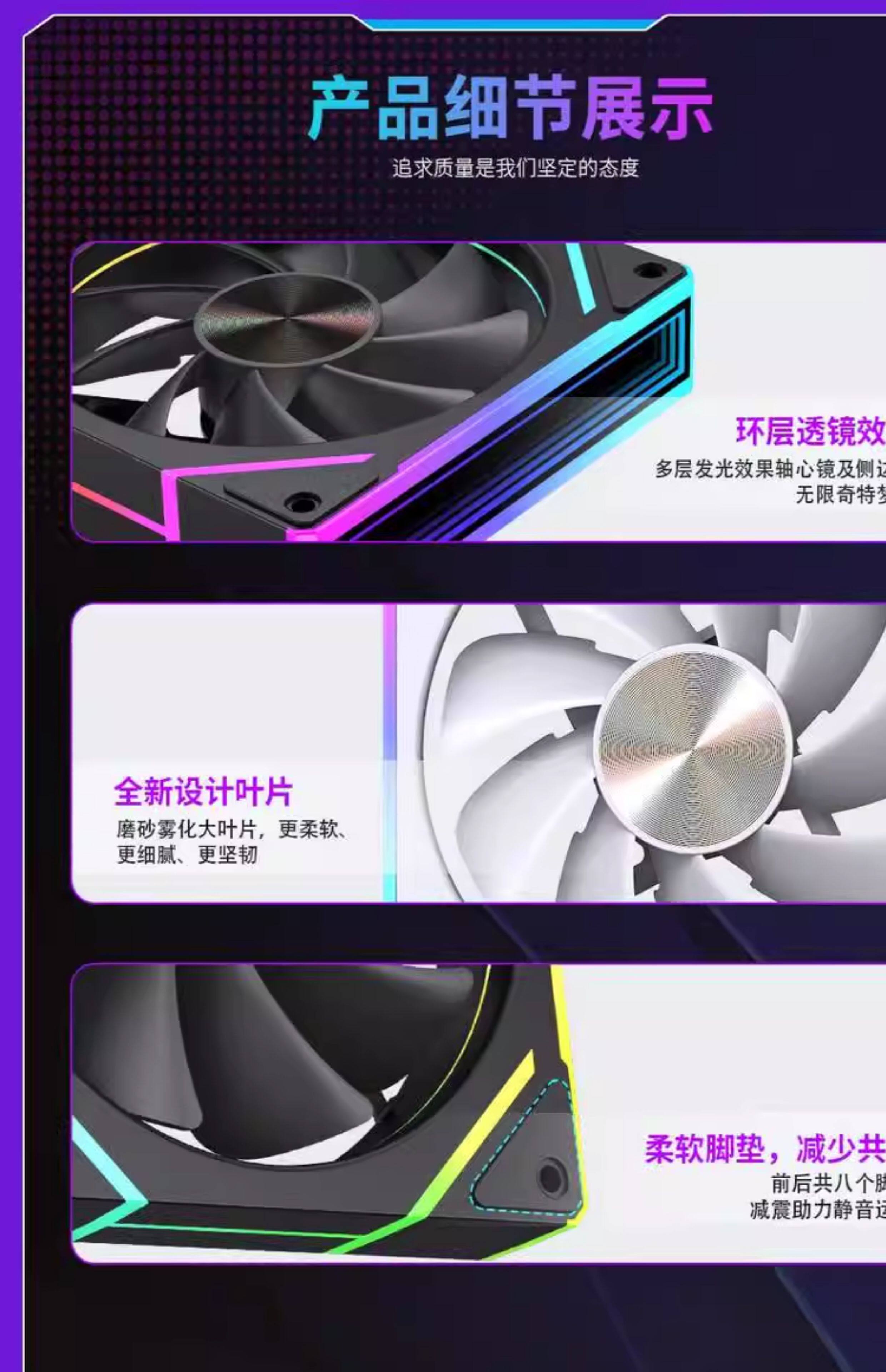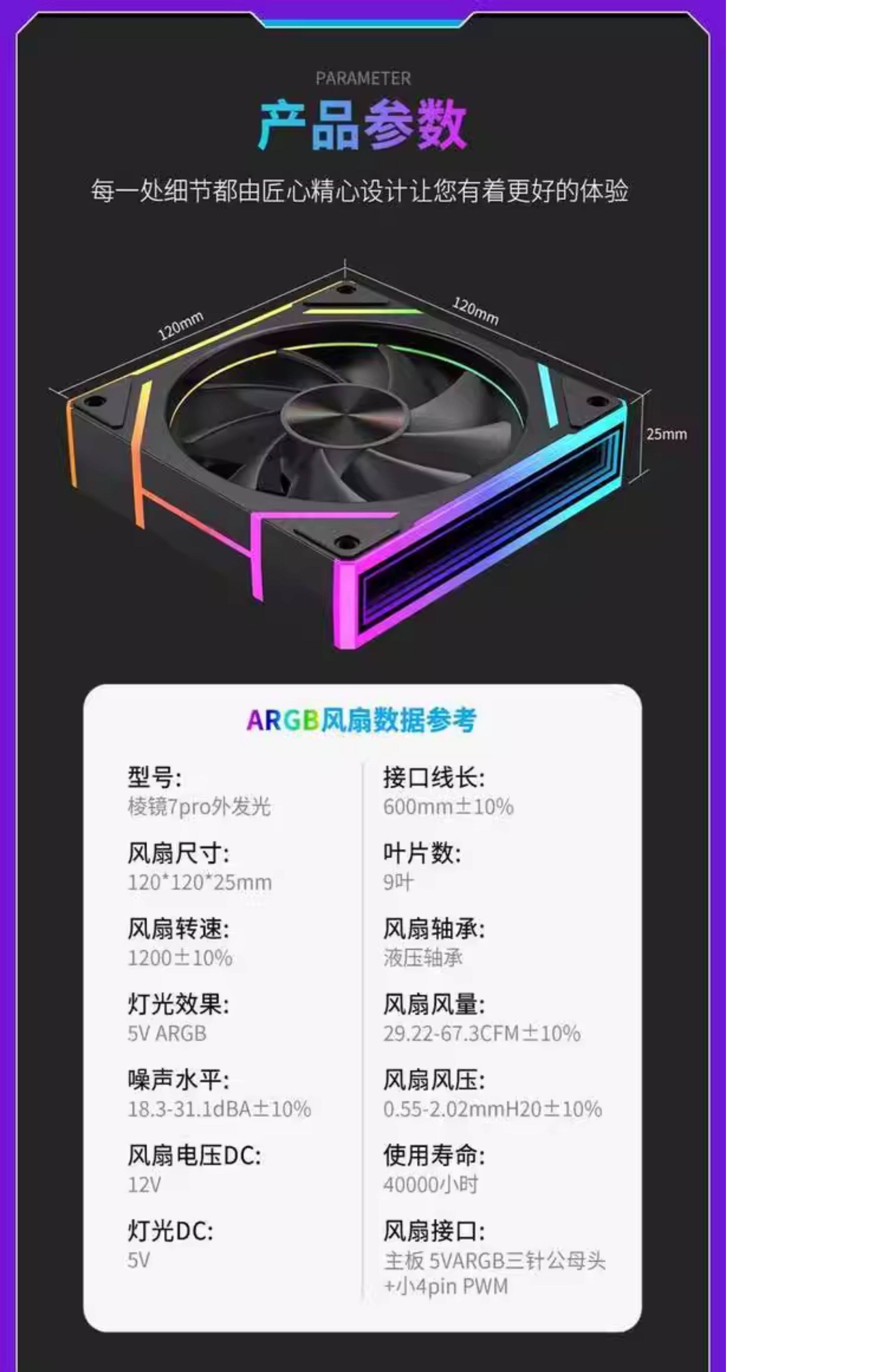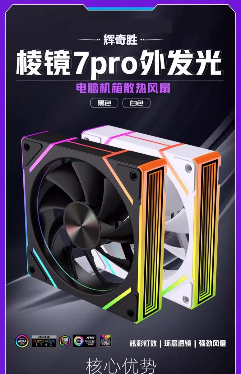 Prism 7Pro Cooling Case Fan 12cm Panoramic View Room Computer Silent Argb Synchronized Cd Pattern External Lighting