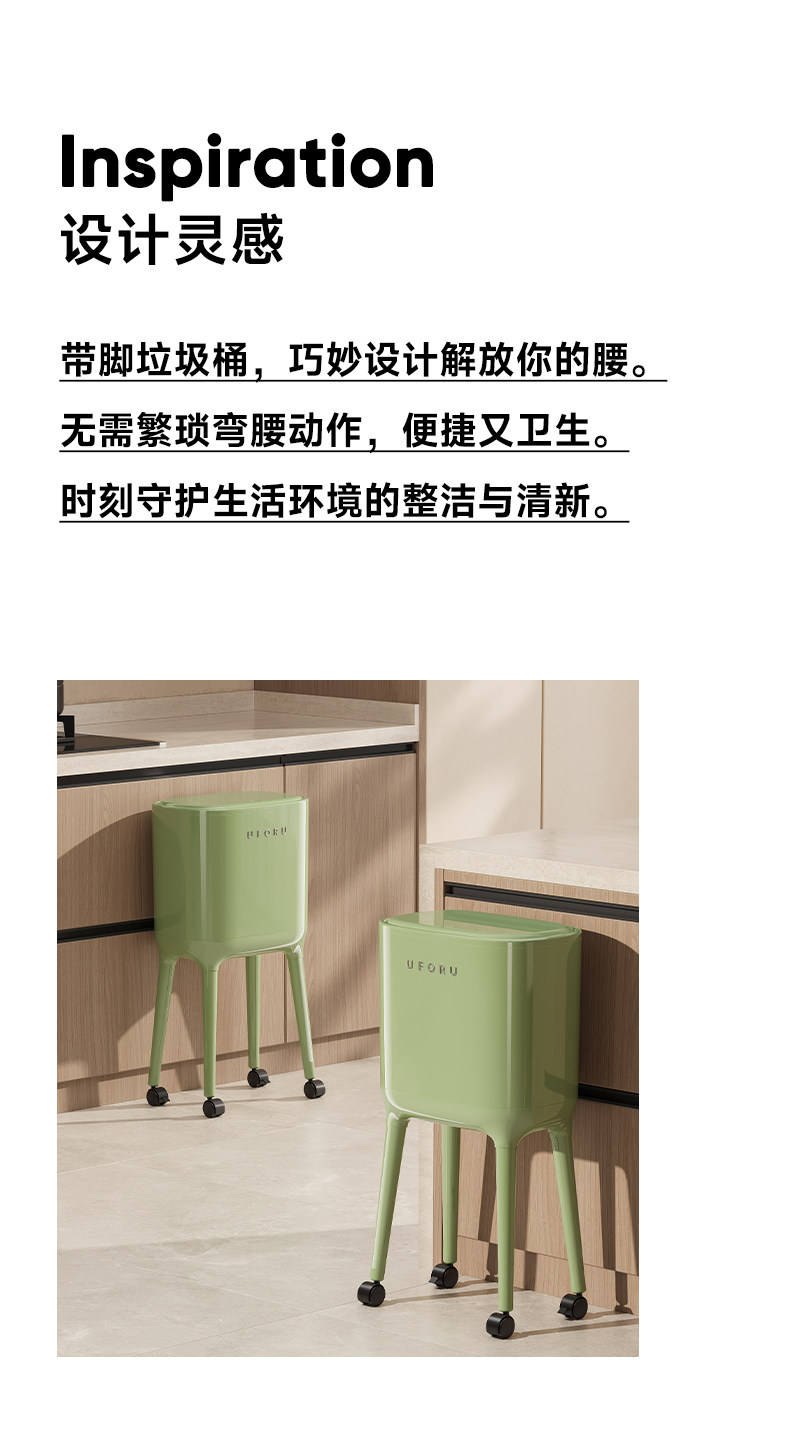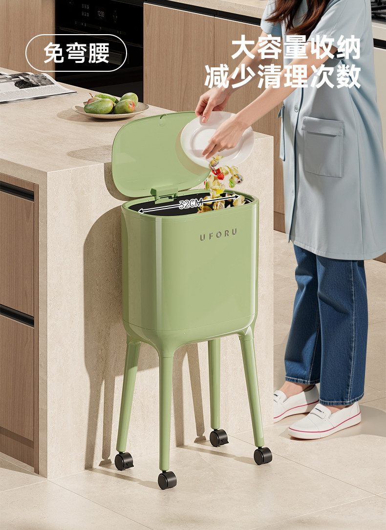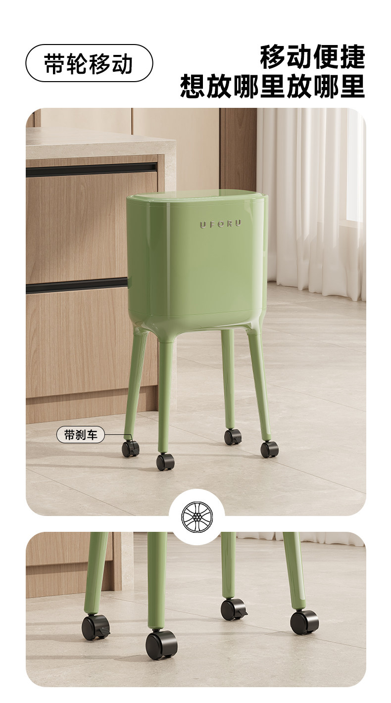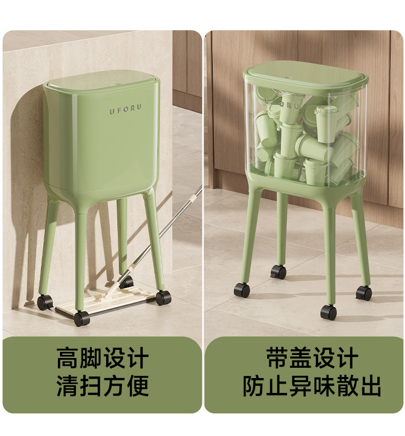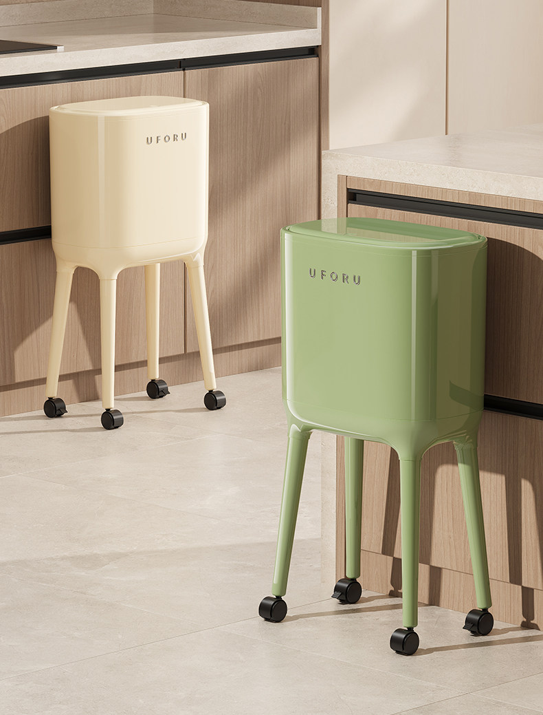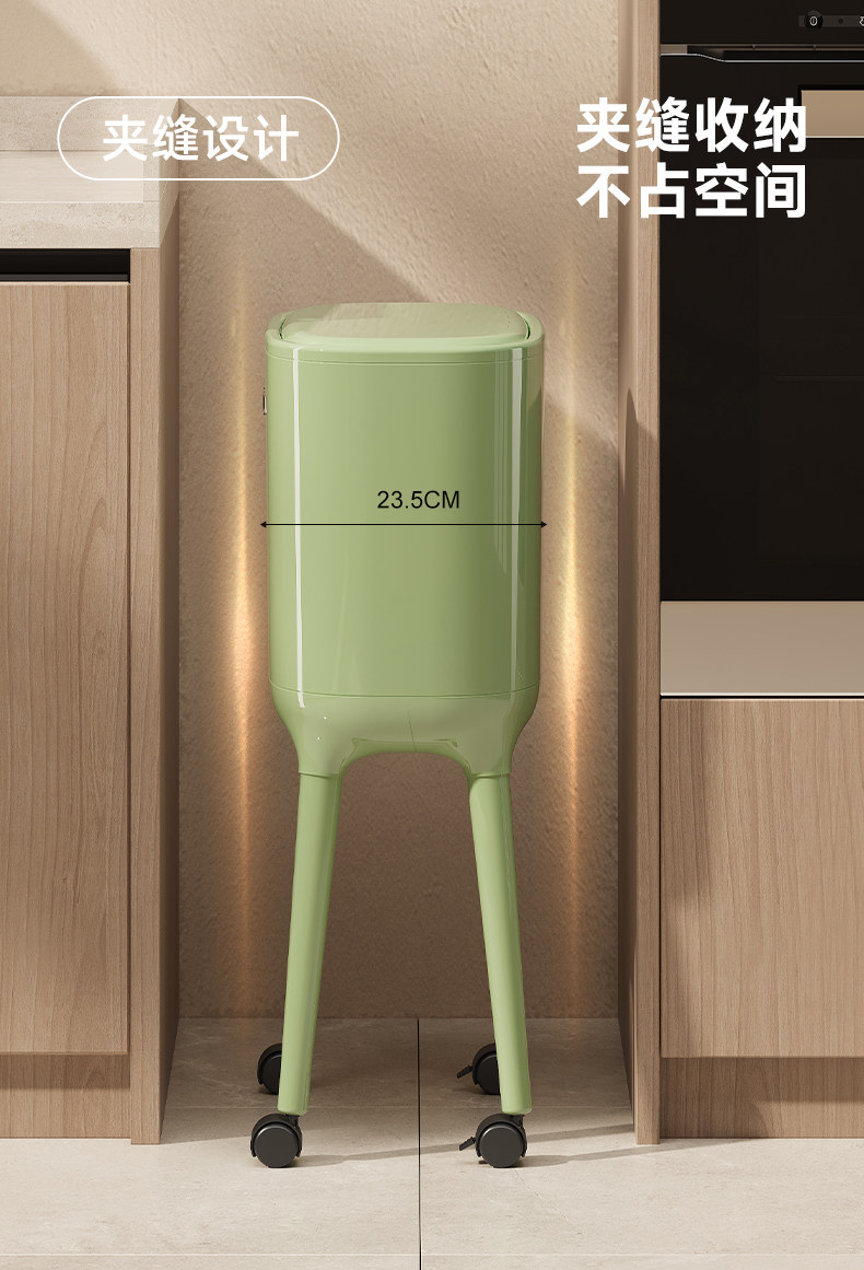 No Need to Bend Over, High-Looking, Tall Kitchen Trash Can, Sanitary Bin, Press-Type, Large Capacity for Home Use, with Wheels, Movable