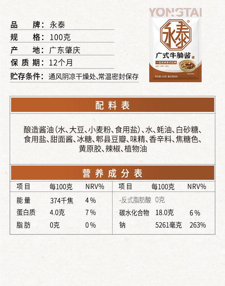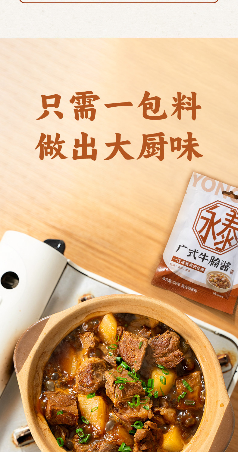 Yongtai Cantonese Style Beef Brisket Sauce 100g*4 Radish Stew Beef Brisket and Offal Sauce Cantonese Style Beef Brisket Sauce for Hot Pot