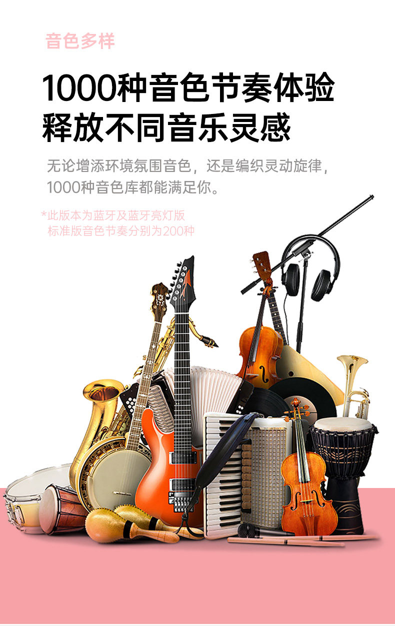 | Color Classification | [Fantasy Purple] 88-Key Standard Version,【Dream Purple】88-Key Bluetooth Electronic Keyboard with Adjustable Volume,【Dreamy Purple】88-Key Bluetooth Light-Up Keyboard with Adjustable Volume,[Cool Black] 88-Key Standard Version,[Cool Black] 88-Key Bluetooth Version,【Cool Black】88-Key Bluetooth Illuminated Keyboard with Key Pressure Sensitivity,[Fashion White] 88-Key Standard Version,[Fashion White] 88-Key Bluetooth Version,【Fashion White】88-Key Bluetooth Illuminated Keyboard with Key Pressure Sensitivity,[Sakura Pink] 88-Key Standard Version,【Sakura Pink】88-Key Bluetooth Electronic Keyboard with Adjustable Volume,【Sakura Pink】88-Key Bluetooth Illuminated Keyboard with Adjustable Volume,[Rose Pink] 88-Key Standard Version,[Rose Pink] 88-Key Bluetooth Version,【Rose Pink】88-Key Bluetooth Light-Up Keyboard with Adjustable Volume |