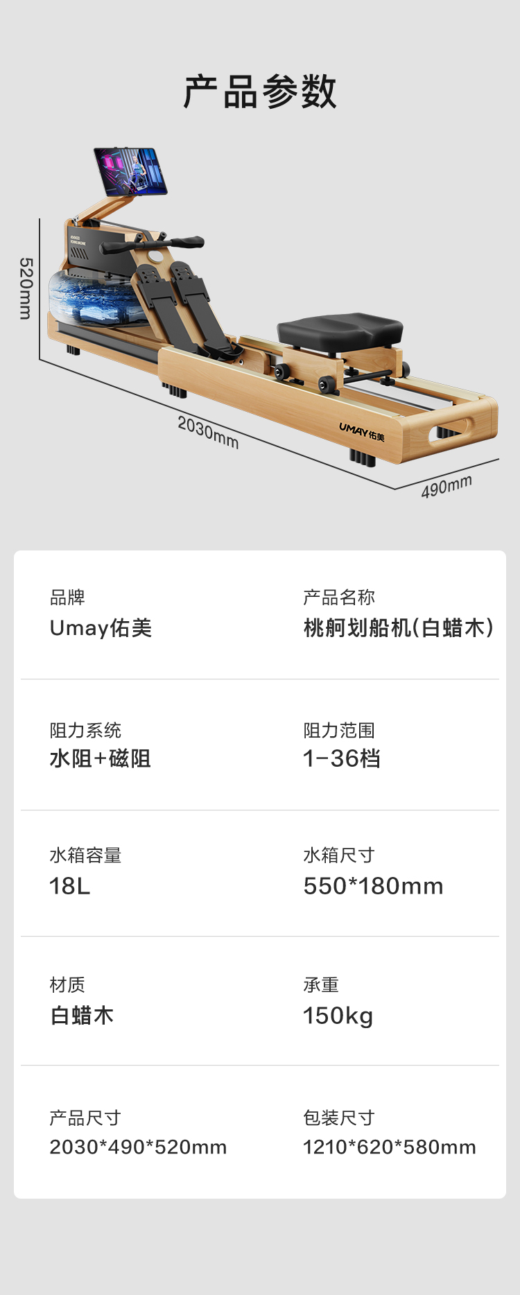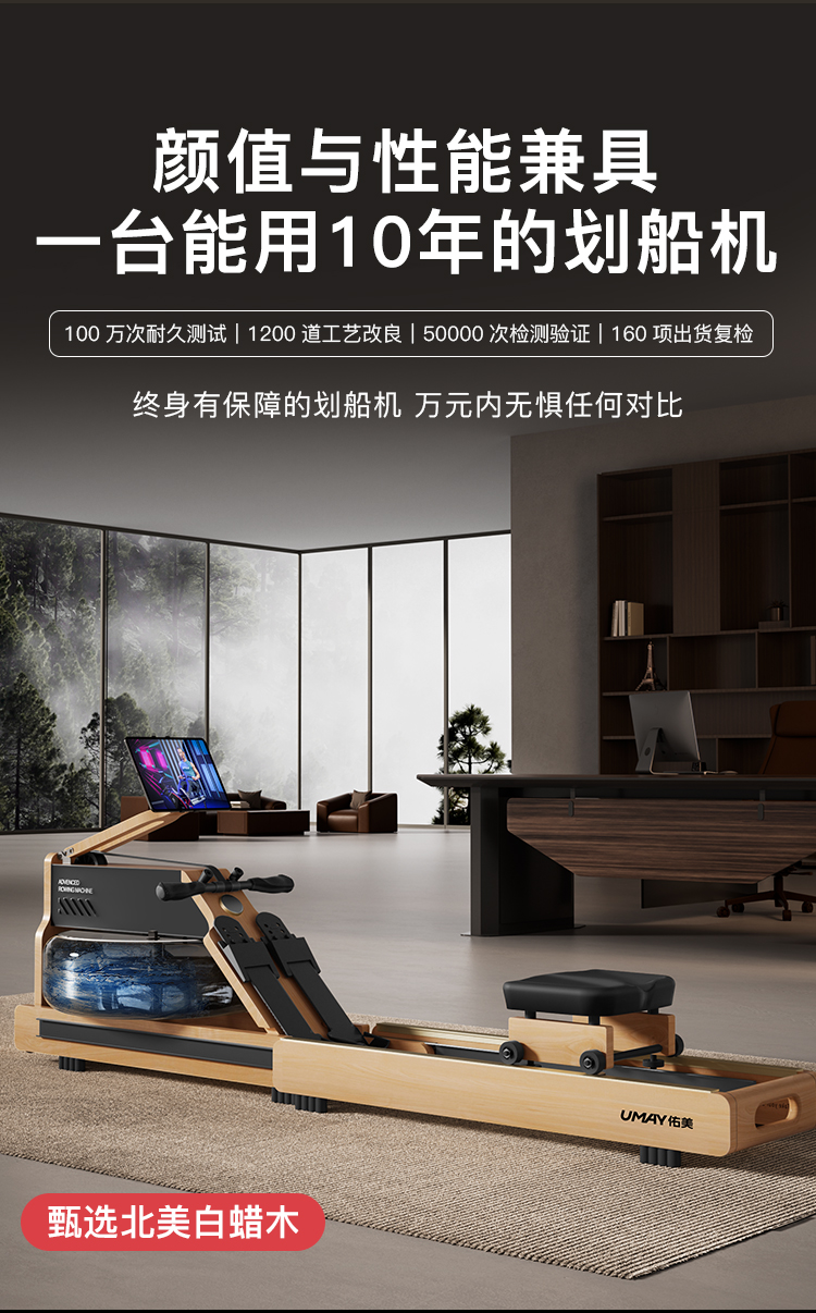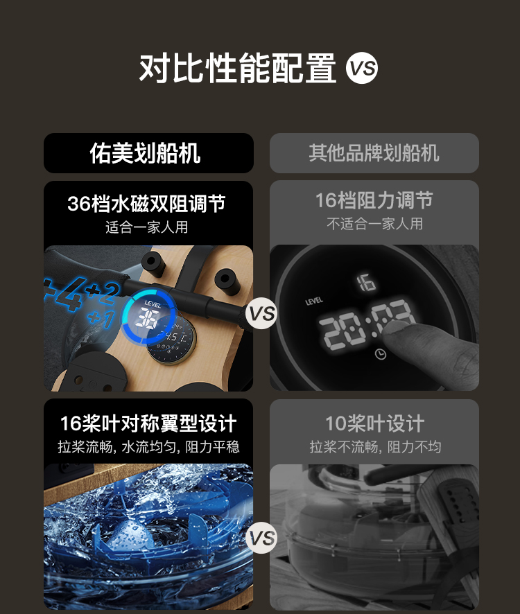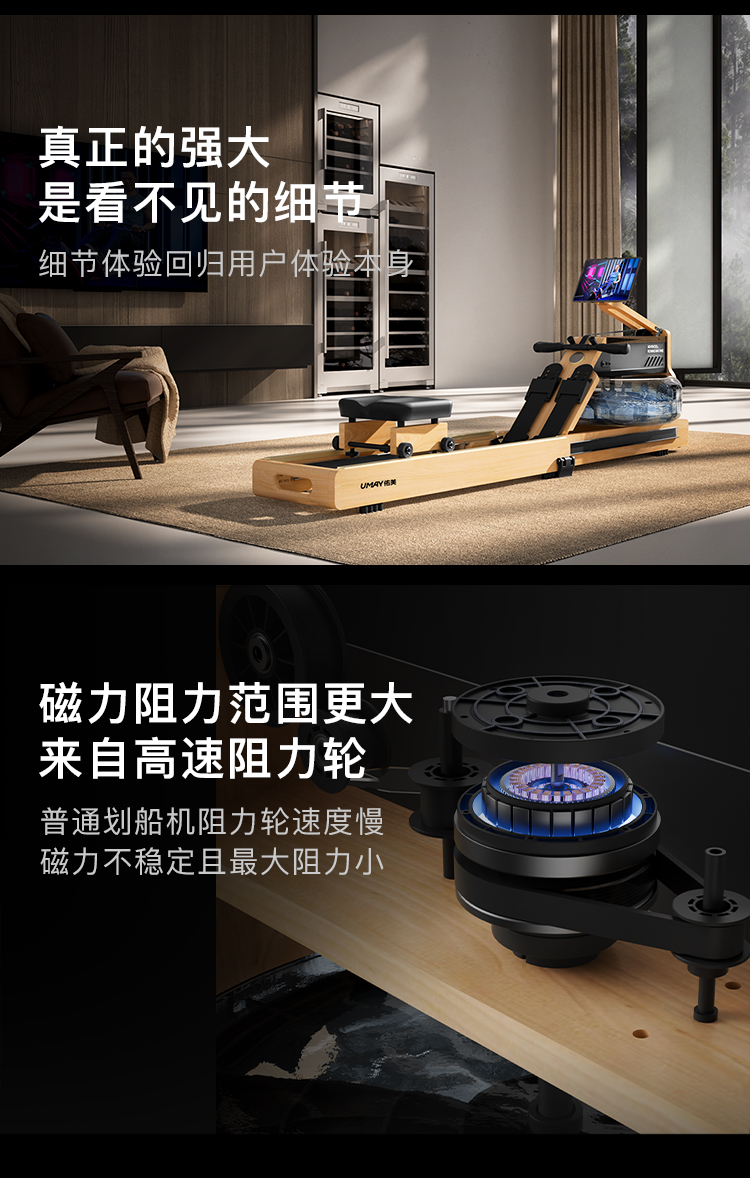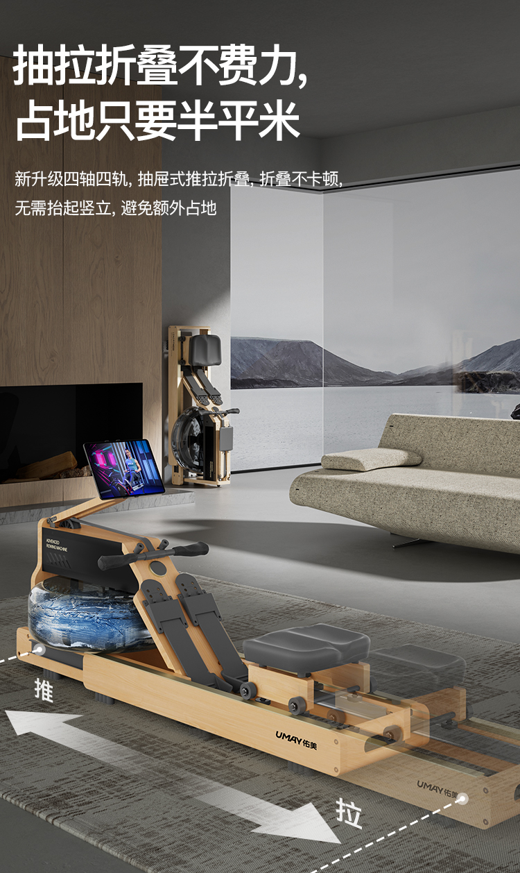 Youmei Rowing Machine with Dual Water and Magnetic Resistance, Smart Foldable Water Resistance Rowing Machine, Magnetic Resistance Fitness Equipment R7B
