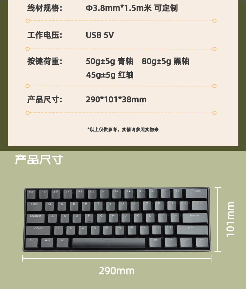 K61 Mechanical Keyboard Mini Portable Wired External Keyboard for Laptop Red, Blue, Black, Brown Switches for Office and Gaming
