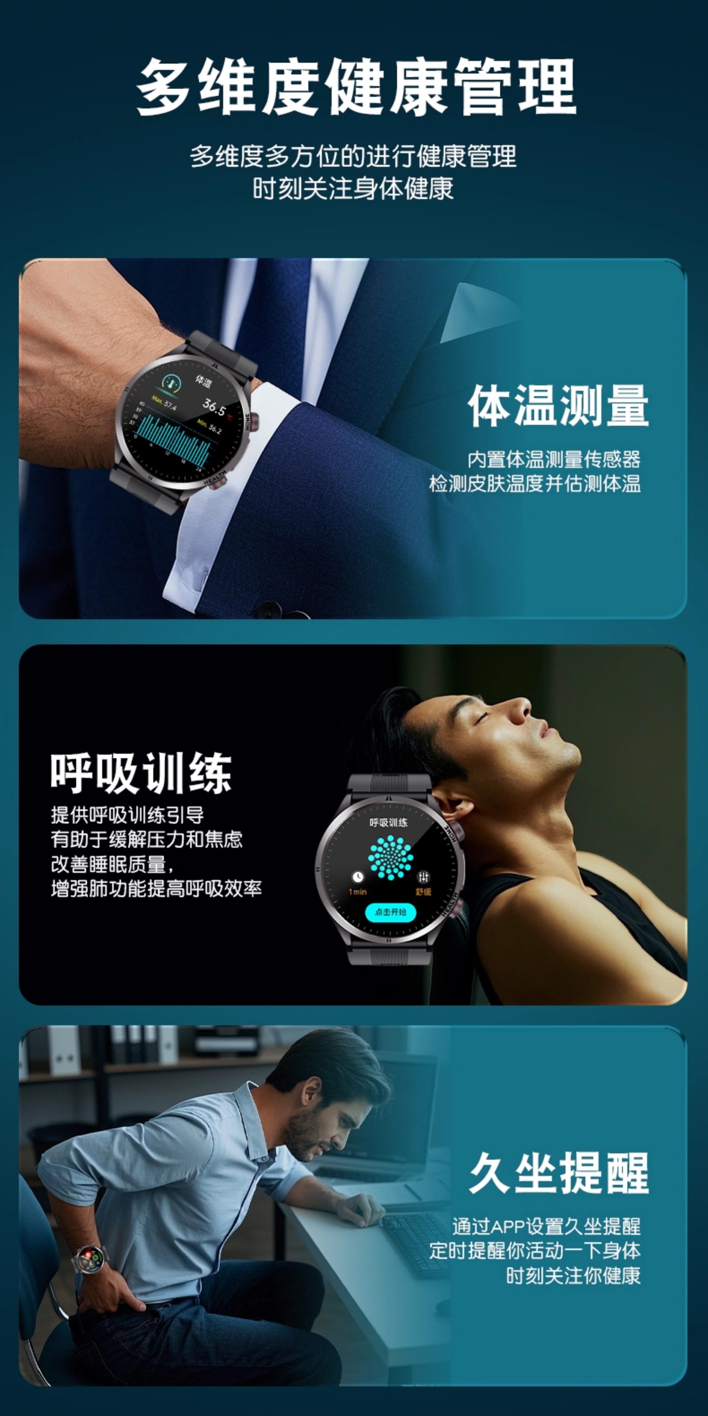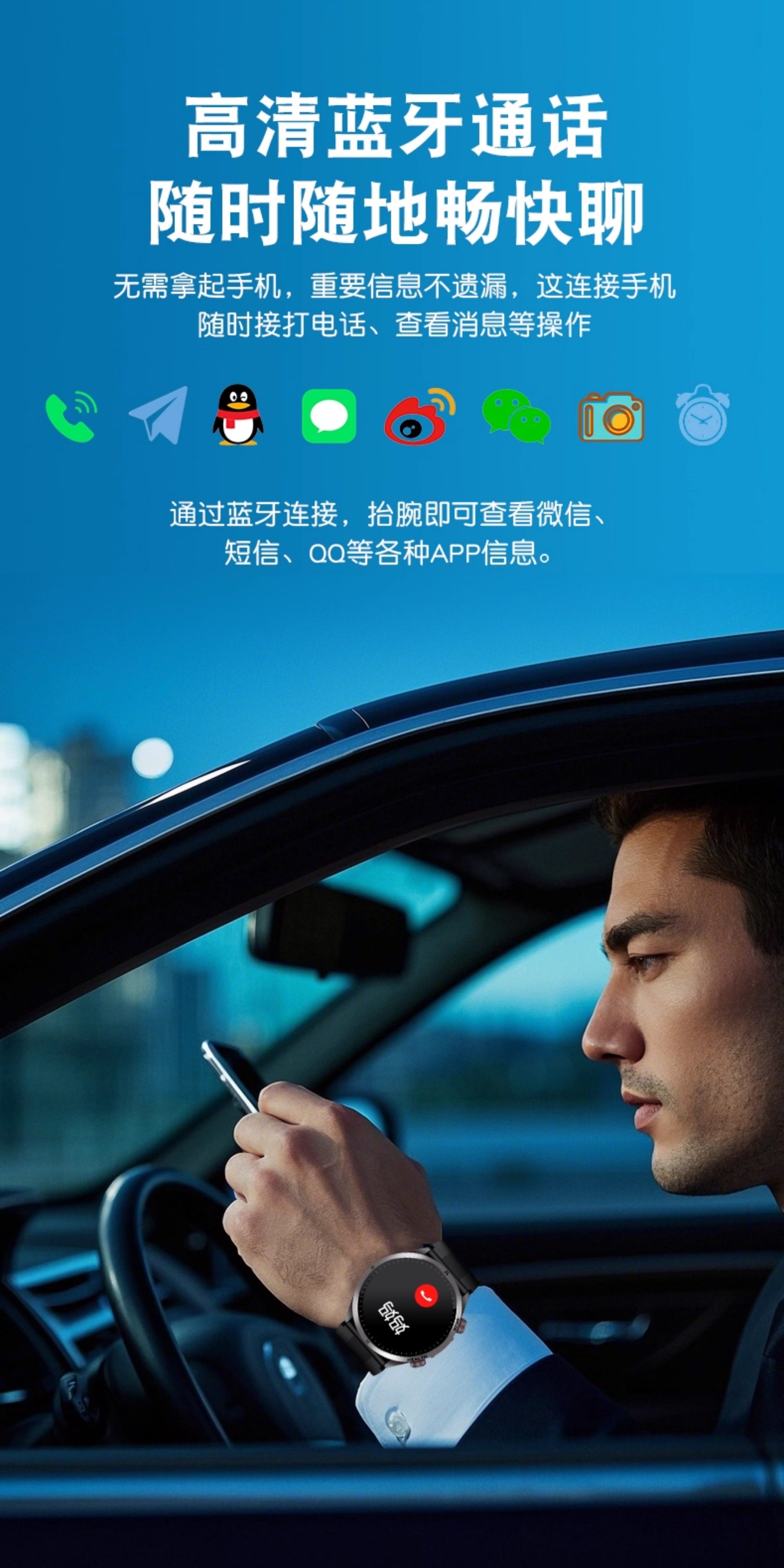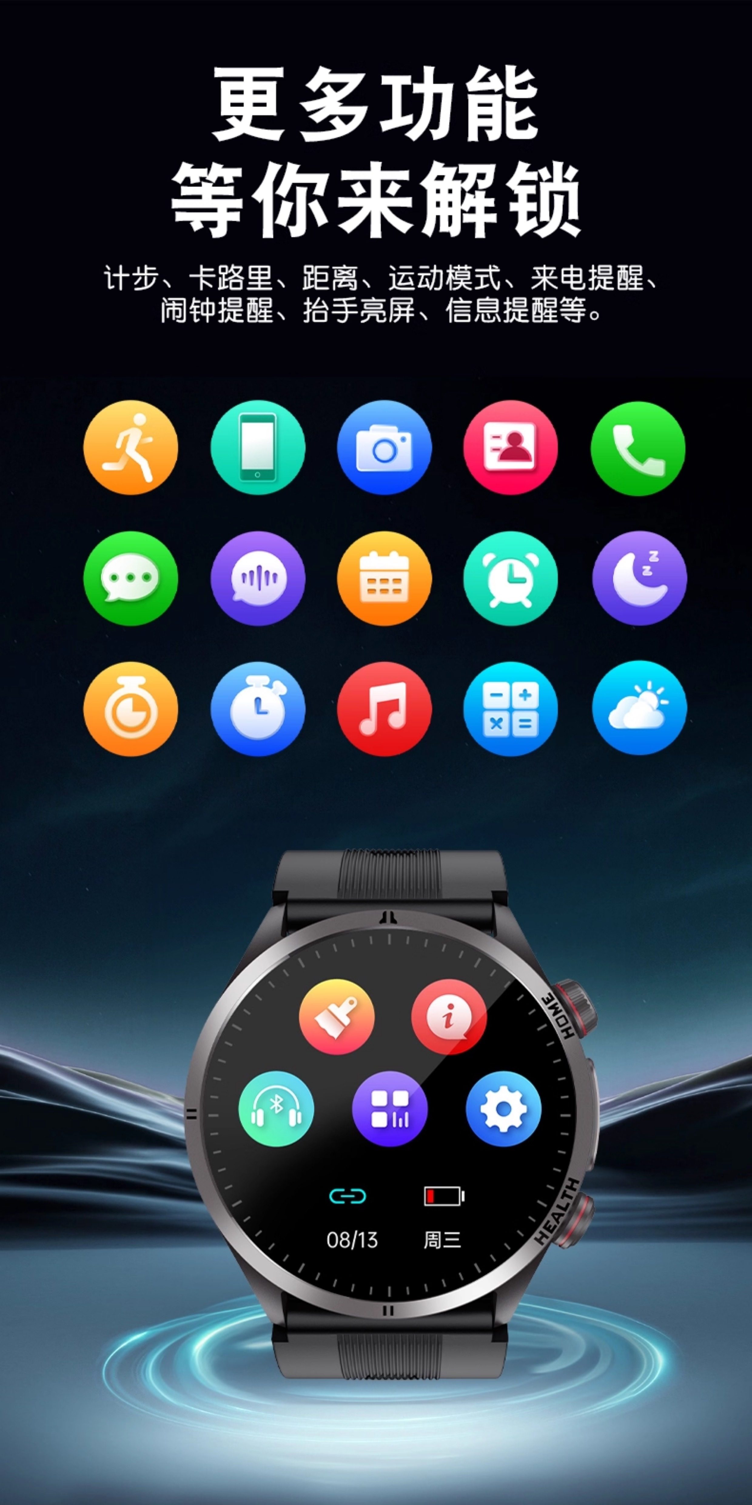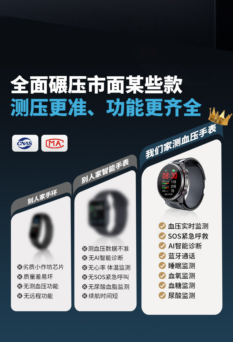 | Function | Exercise Tracking,Blood Pressure Monitoring,Step Counting,Bluetooth Call,Information Push,Heart Rate Monitoring,Blood Oxygen Detection,Smart Reminder,Sleep Monitoring,Waterproof |