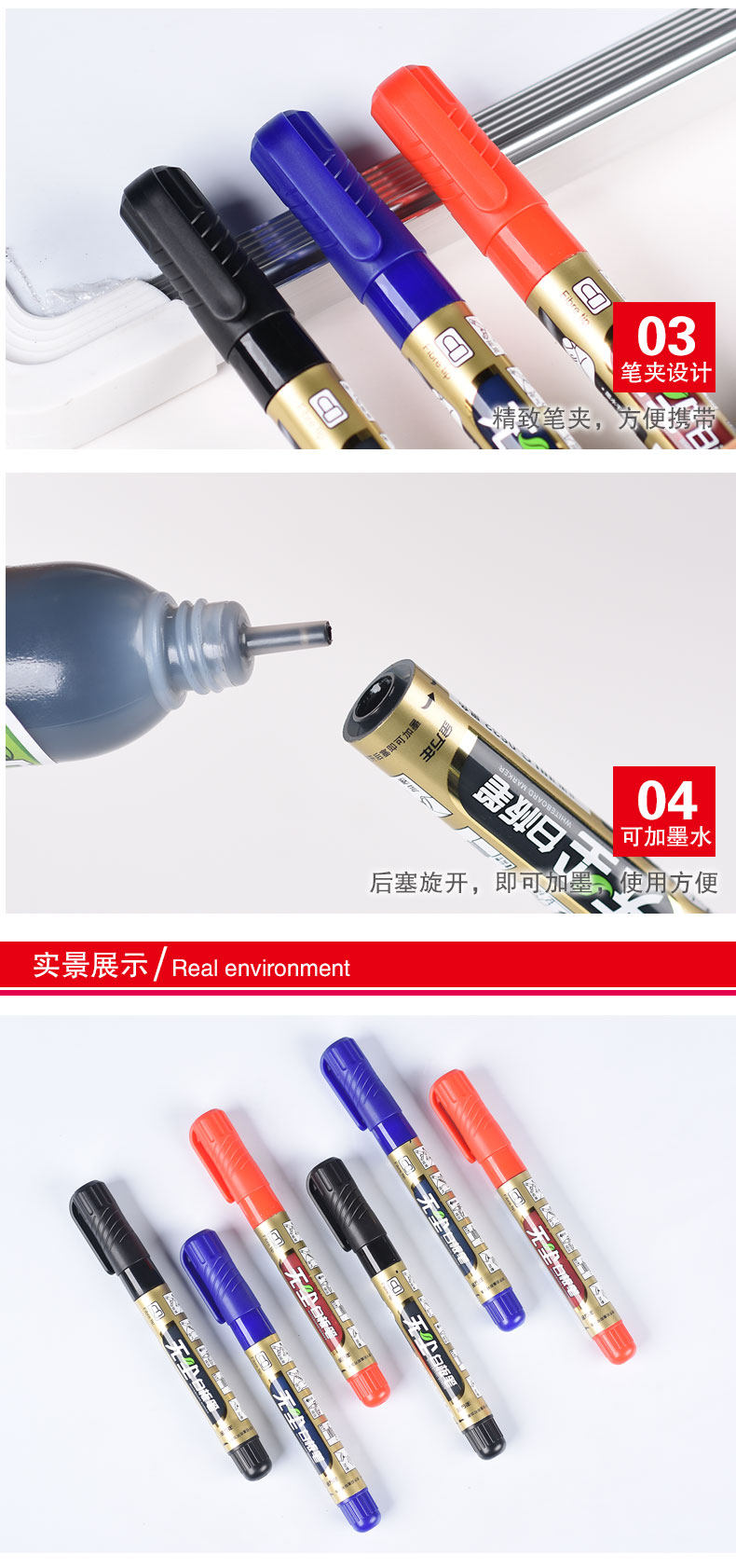 Jinwannian Film-Forming Pen, Dust-Free, Direct Liquid Type, Refillable Ink, Whiteboard Pen, Erasable, Black, Blue, Red, Safe and Non-Toxic