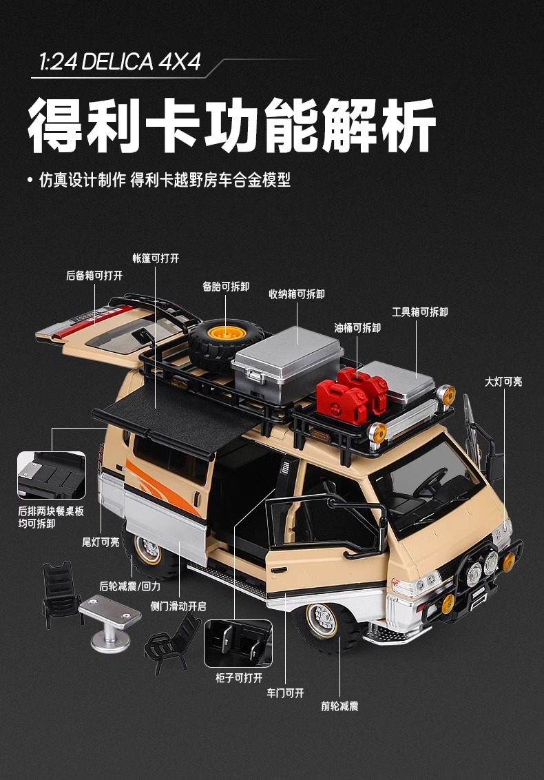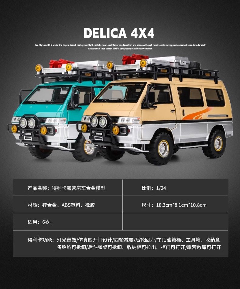 1:24 Mitsubishi Delica Truck Model Van Alloy Camper Van Alloy Simulation Off-Road Vehicle Toy Car Model Car