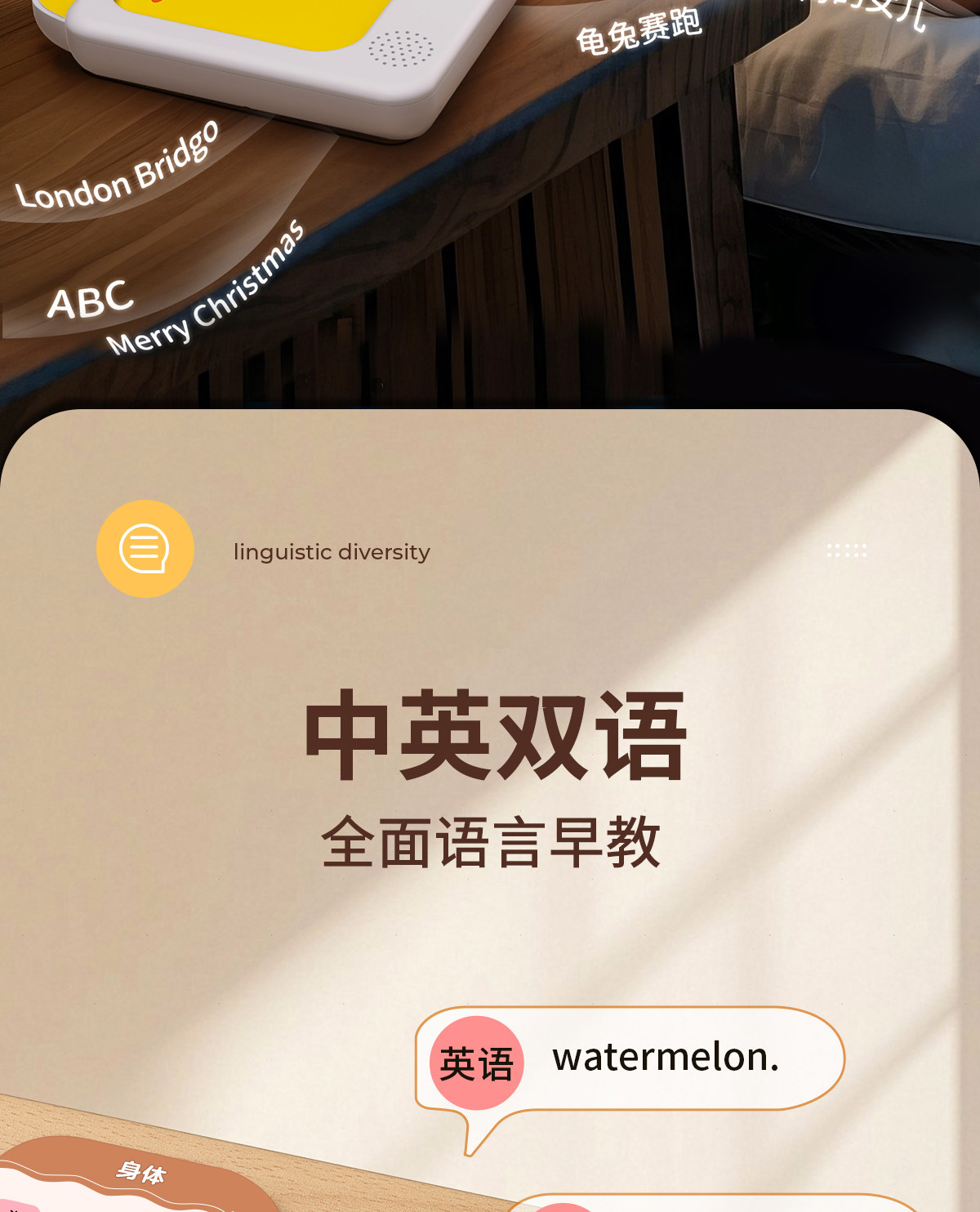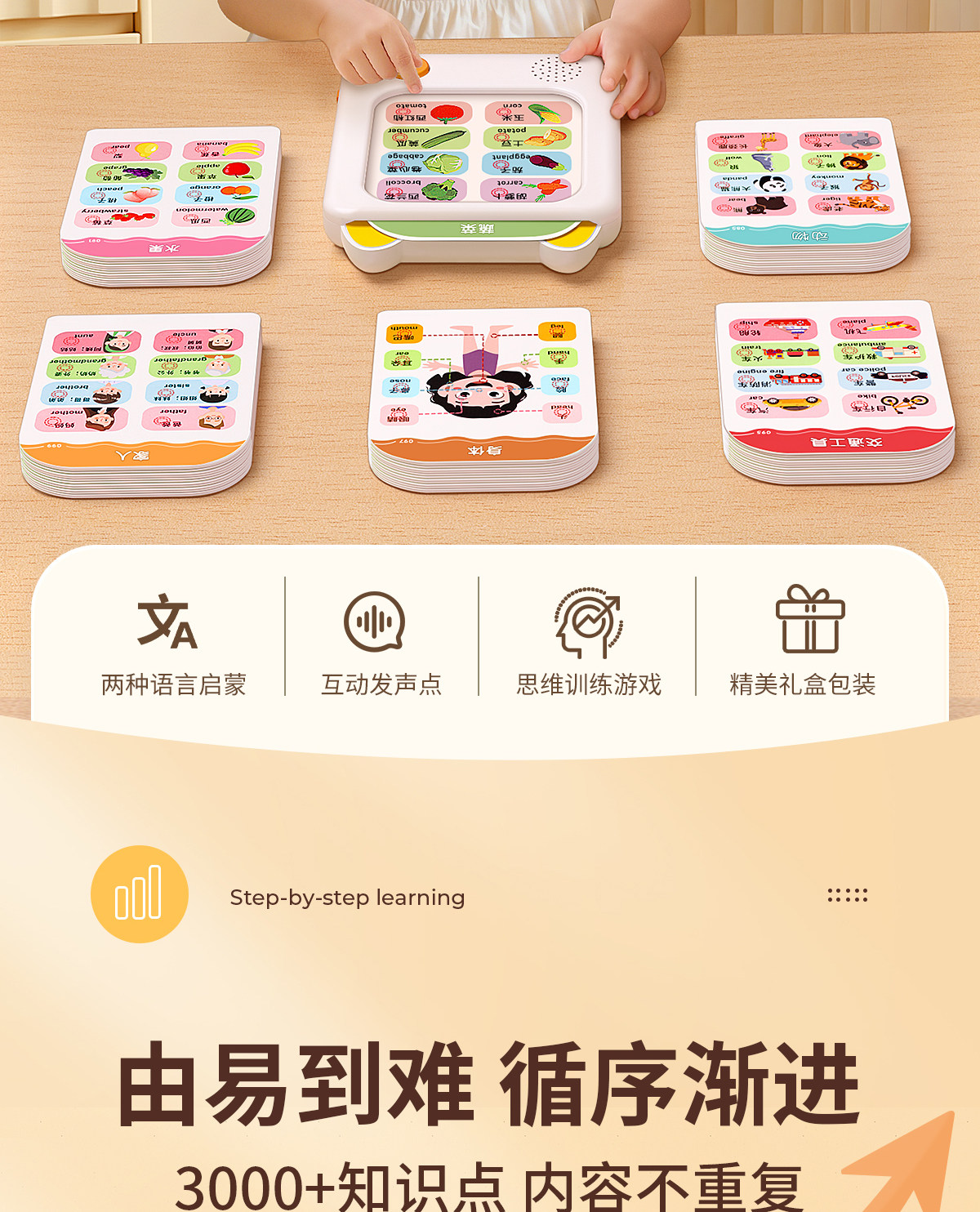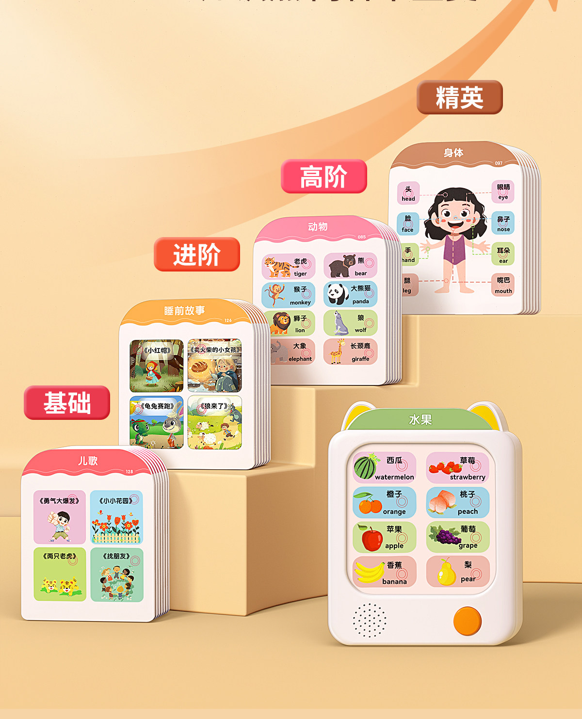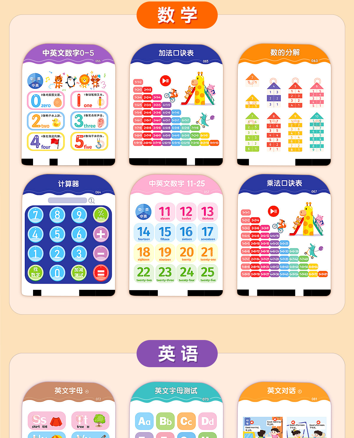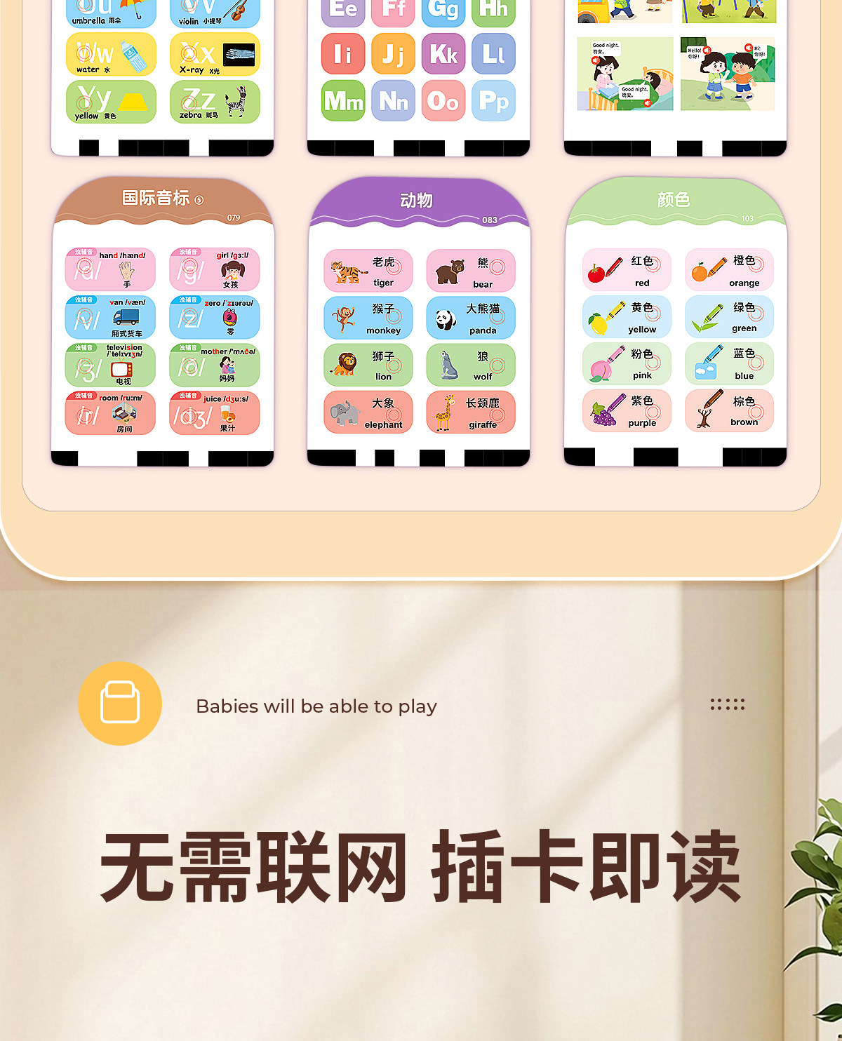 | Color Classification | [Bilingual Early Education Machine] 3000+ Contents/Insert Card to Read,[0-3 Years Old Early Education Set] Early Education Card Machine + Children's Song Audiobook + Talking Early Education Audiobook,ãComprehensive Cognition for Ages 3-6ãEarly Education Card Machine + 300 Tang Poems Sound Book + Literacy Sound Book,[Classic Early Education] Early Education Card Machine + Talking Early Education Audiobook,ãBedtime Nursery RhymesãEarly Education Card Machine + Nursery Rhymes Audio Book,ãLiteracy EnlightenmentãEarly Education Card Machine + Talking Literacy Master,ãClassic PoetryãEarly Education Card Machine + 300 Tang Poems Audio Book |