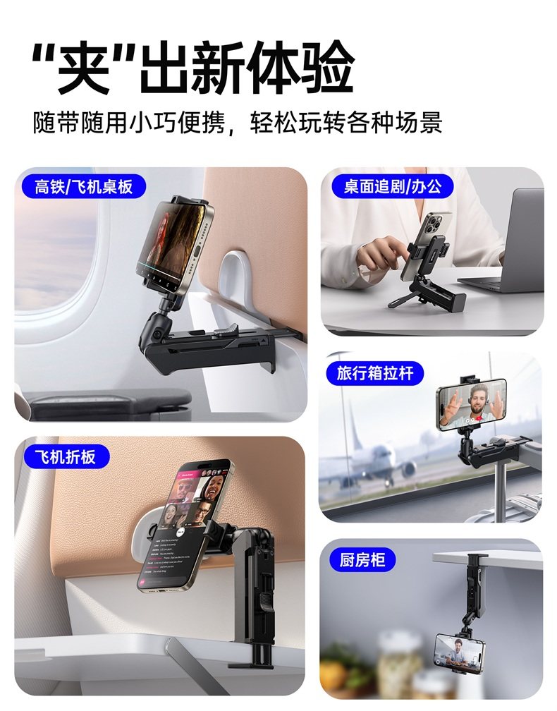 Lamikoo Travel Phone Holder, Portable for High-Speed Trains and Airplanes, 360-Degree Rotation, Suitable for Business Trips, Desktop Mount, Mini Compact Foldable Support Stand, Universal