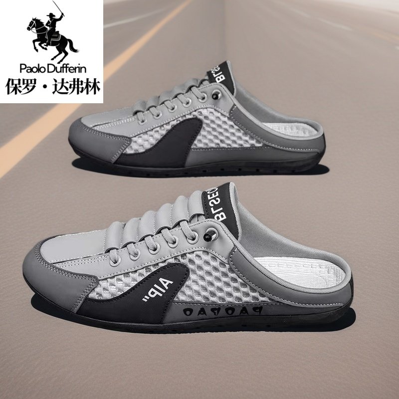 Paul Daflyn Summer Breathable Sports Casual Sneakers Mesh Slip-On Heelless Half-Slip Men's Shoes