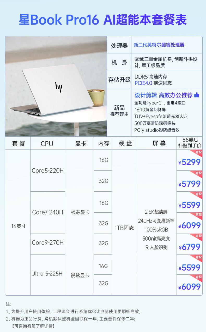 Hp/Hp Star Book Pro 16 Optional Intel Core 7 2.5K 240Hz Hp Laptop Thin and Light Portable Business Office Notebook Official Store