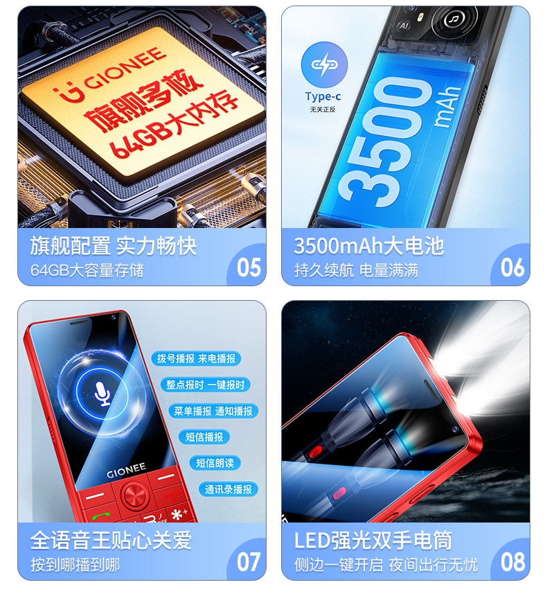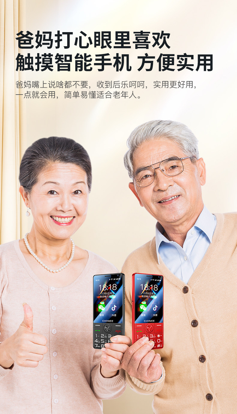 Gionee V60, a Smartphone with Large, Easy-To-Use Buttons Suitable for the Elderly, Features a Touchscreen, Tiktok, Handwriting, Video, Large Font, Loud Sound, Large Screen, and Long Battery Life, Specifically Designed for Seniors