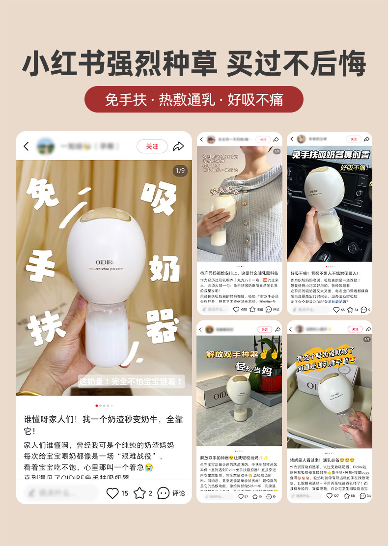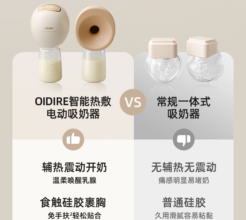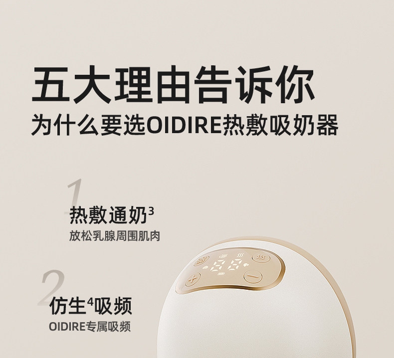 Oidire Breast Pump with Heat Therapy, Painless Massage, Single or Double, Hands-Free, Electric, Fully Automatic, Genuine, Silent