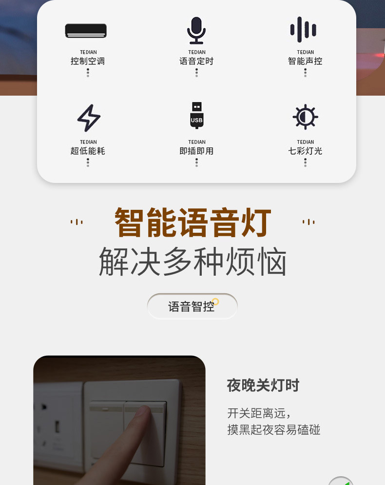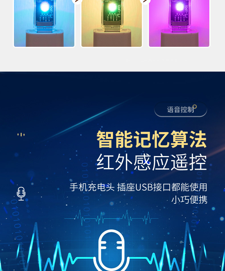 Air Conditioner Voice Remote Control Wireless Control 7-Color Night Light Infrared Air Conditioner Companion USB Socket Smart Voice Control Switch