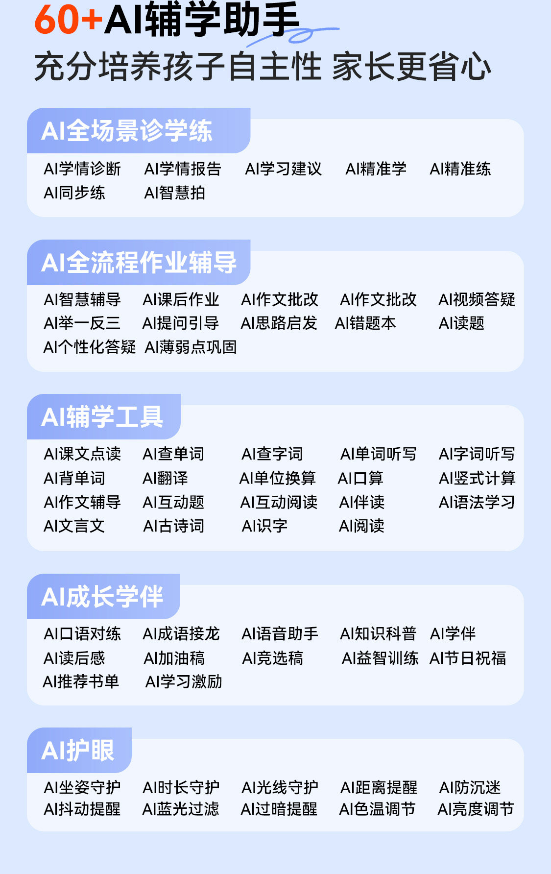 | Parental Control | Sitting Posture Monitoring,Application Download Restrictions,Answer Locked,Time Control,Content Filtering,Application Management,Account Switching,Parental Mobile App |