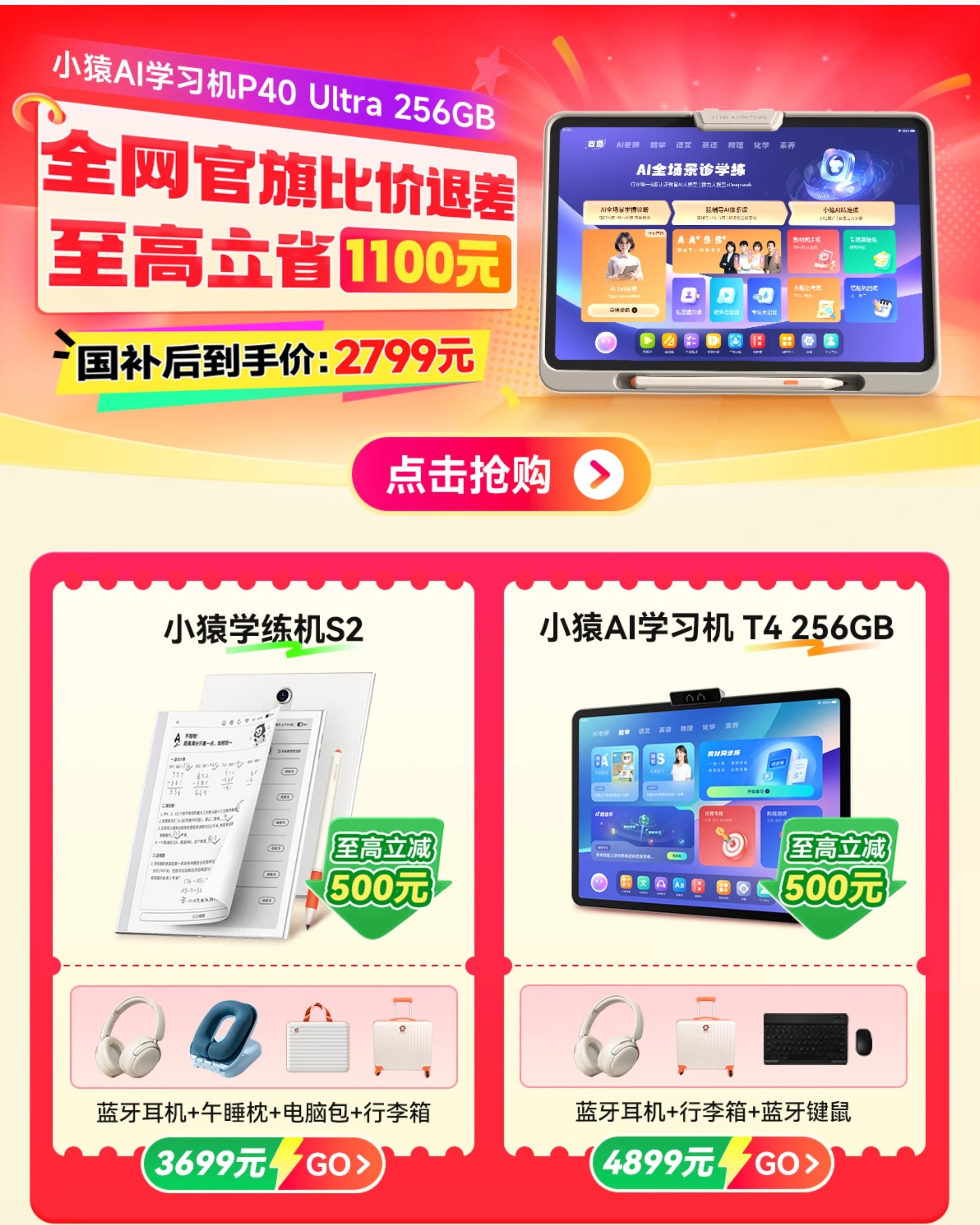 [88Vip Coupons Available, Price Difference Refund] 2025 New Model Little Monkey Learning Machine P40Pro, Monkey Tutor Ai Tutoring Machine, Smart Student Tablet, Suitable for Elementary, Middle, and High School, Eye Protection