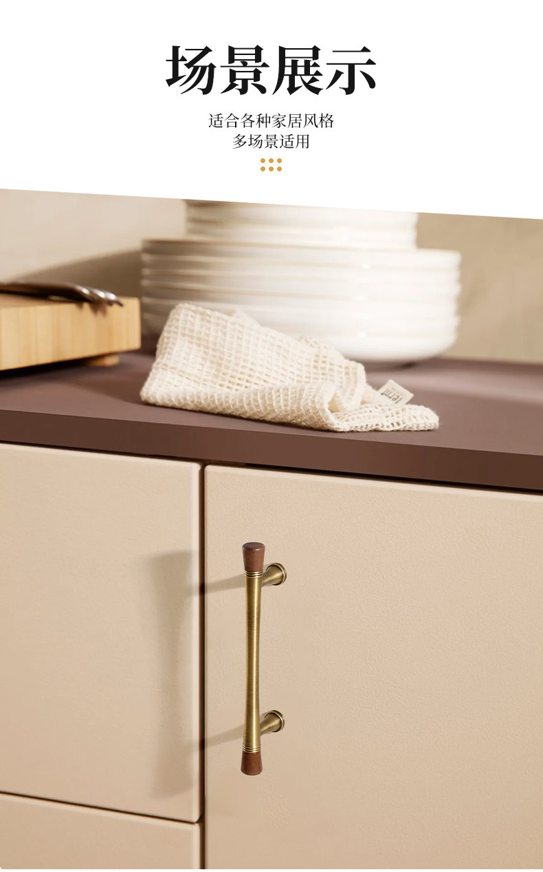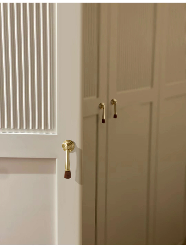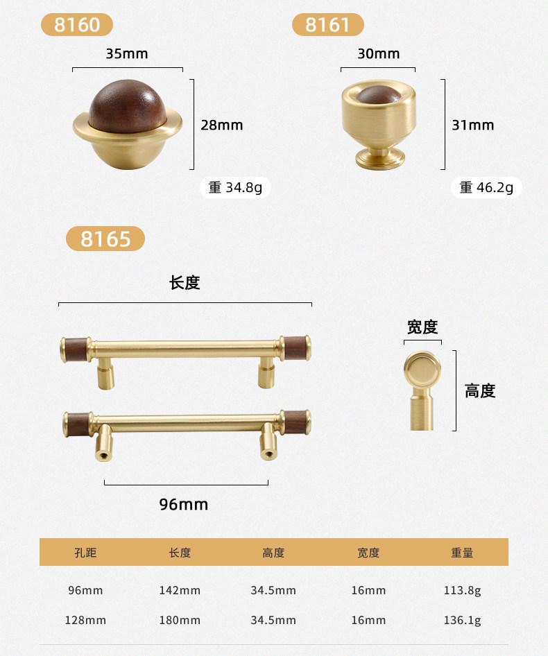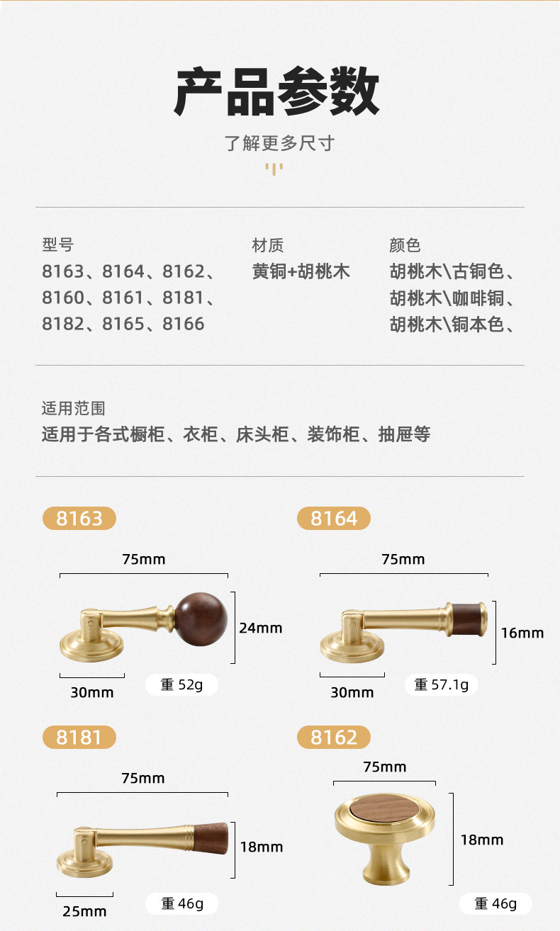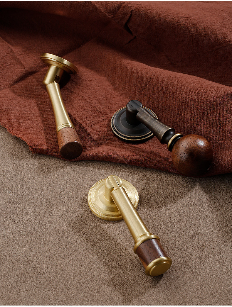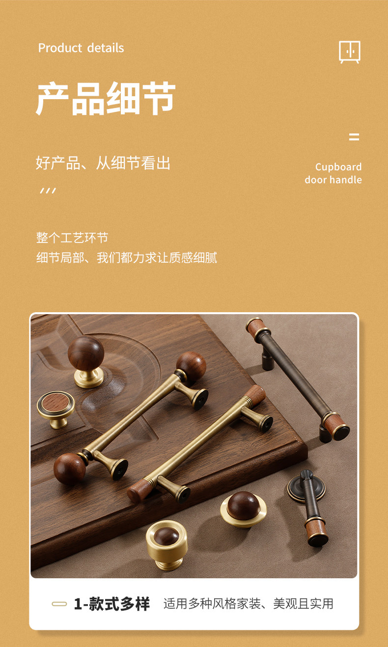 New Chinese-Style Retro Walnut Wood Brass Cabinet Door Handle, Antique Bronze Color Round Ball Cabinet Wardrobe Drawer Handle