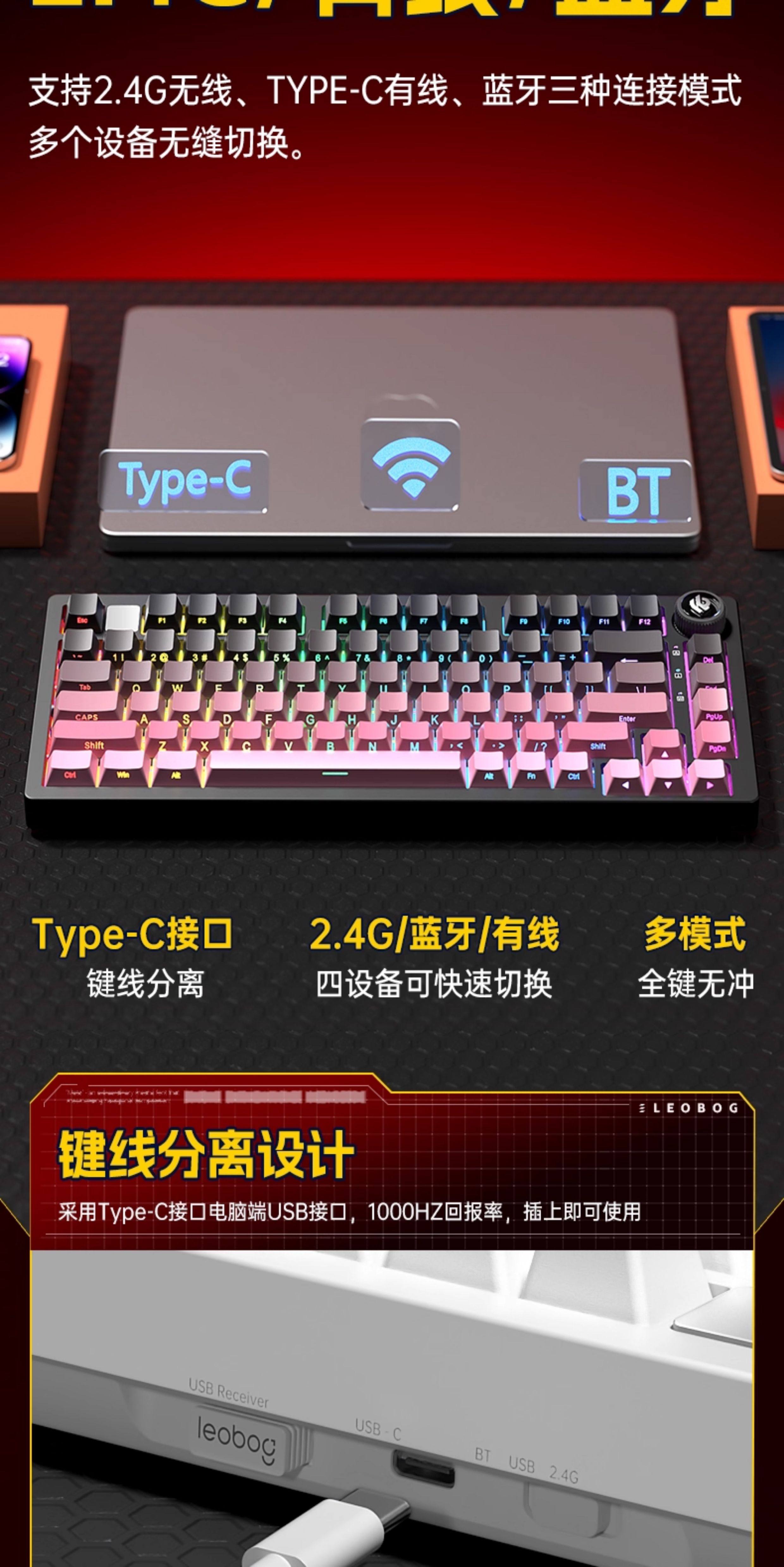 Leobog Hi75C Three-Mode Mechanical Keyboard Aluminum Kit Finished Product Wireless Competitive Gaming Desktop Office