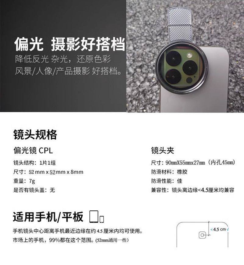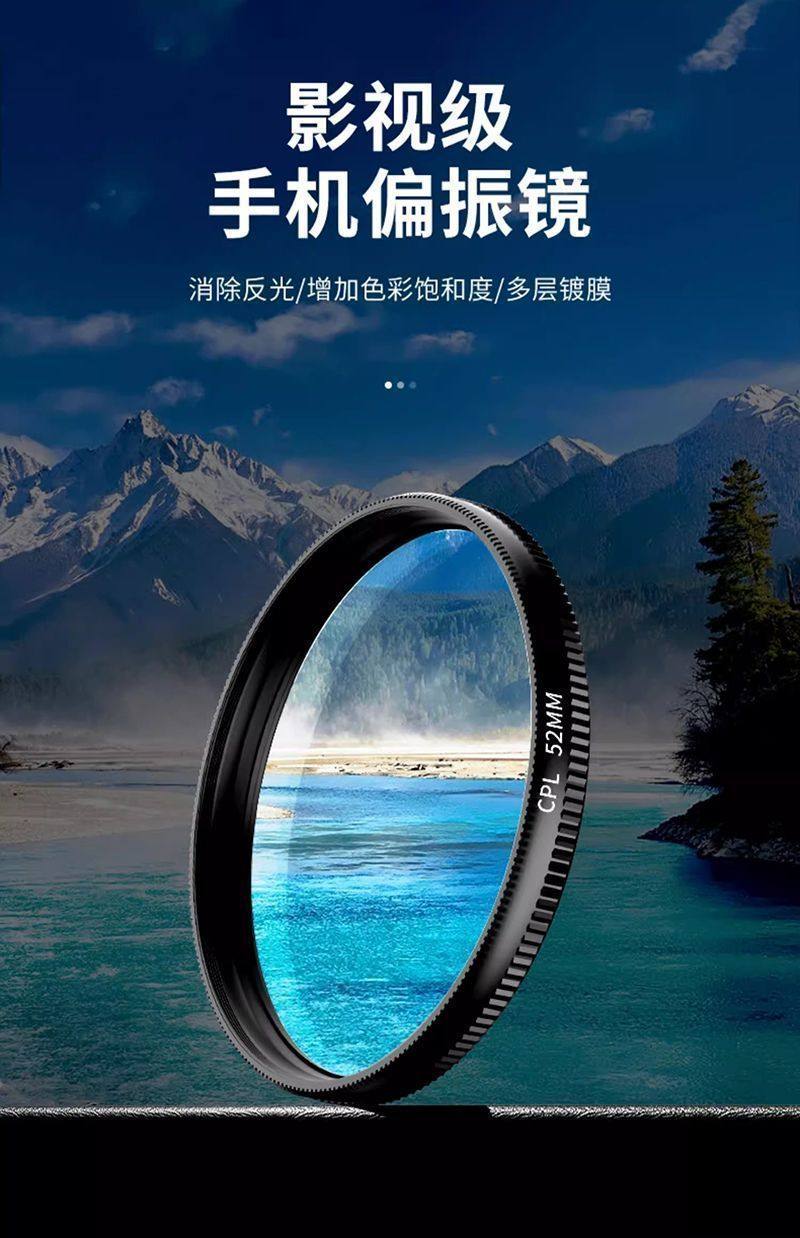 Polarizing Filter for Mobile Phones, Specialized Photography Filter for High-Definition Photography, Professional Cpl Polarizer Suitable for Huawei, Iphone, Apple, Nd Filter, Universal Shooting Accessory 52mm