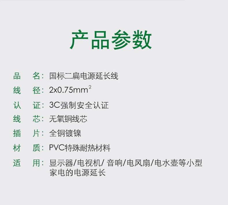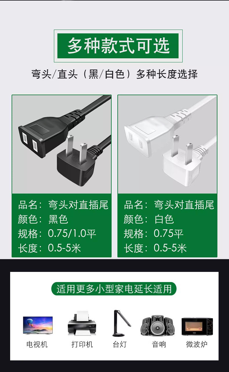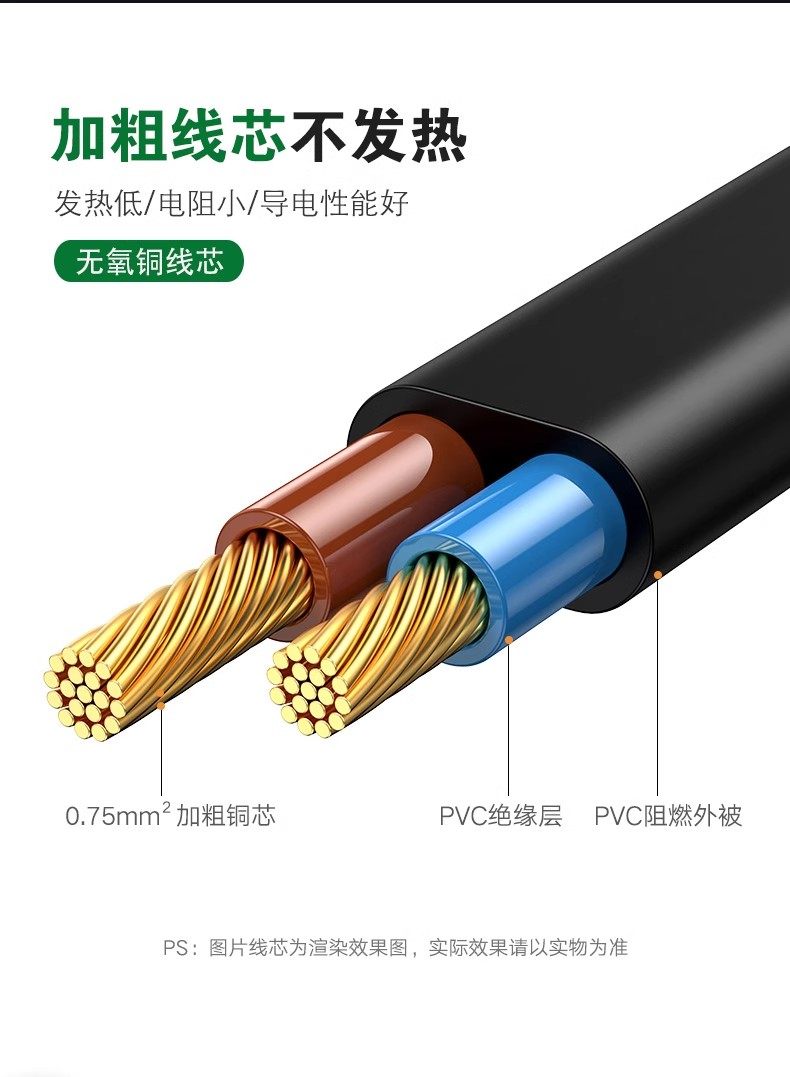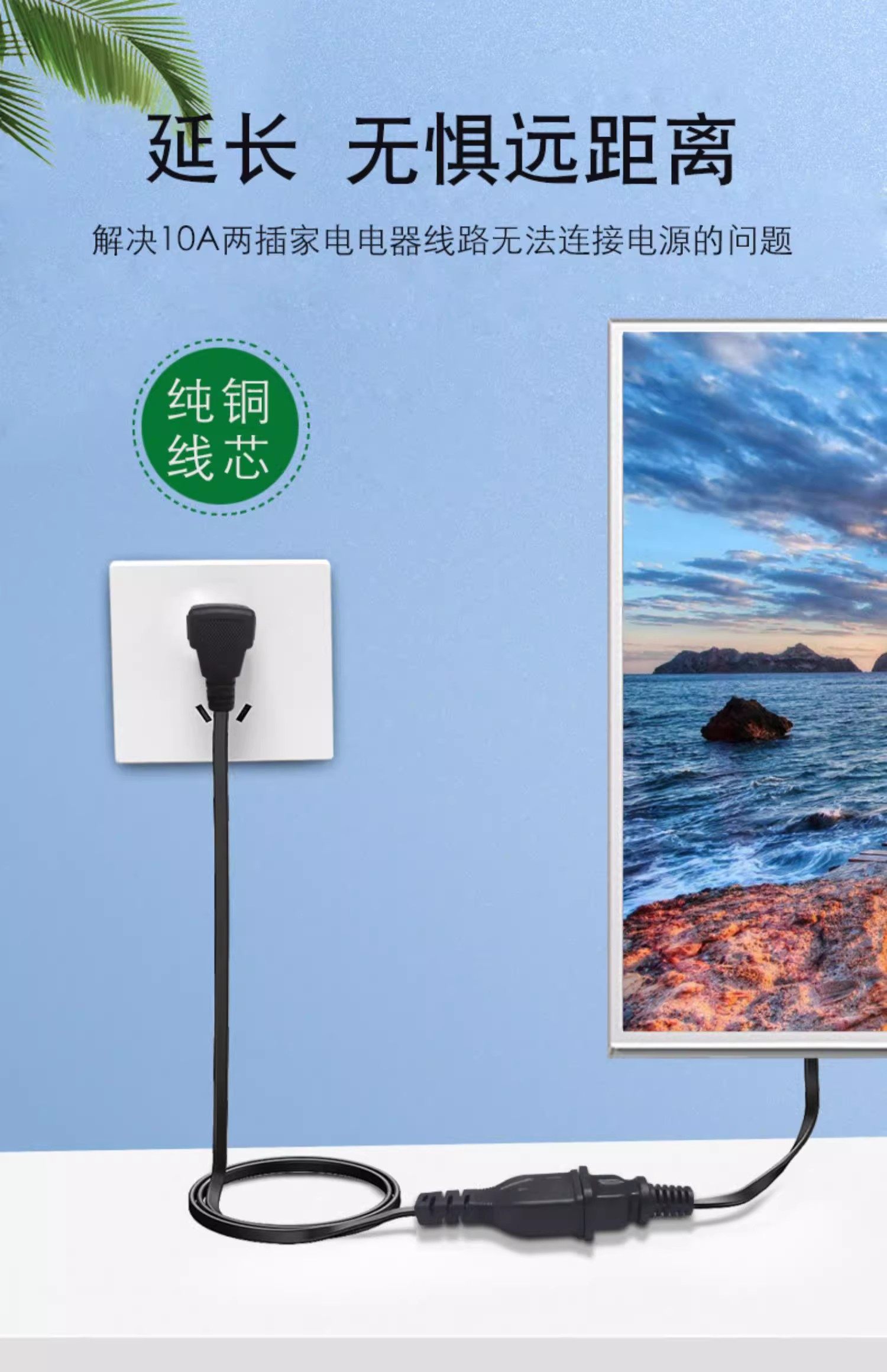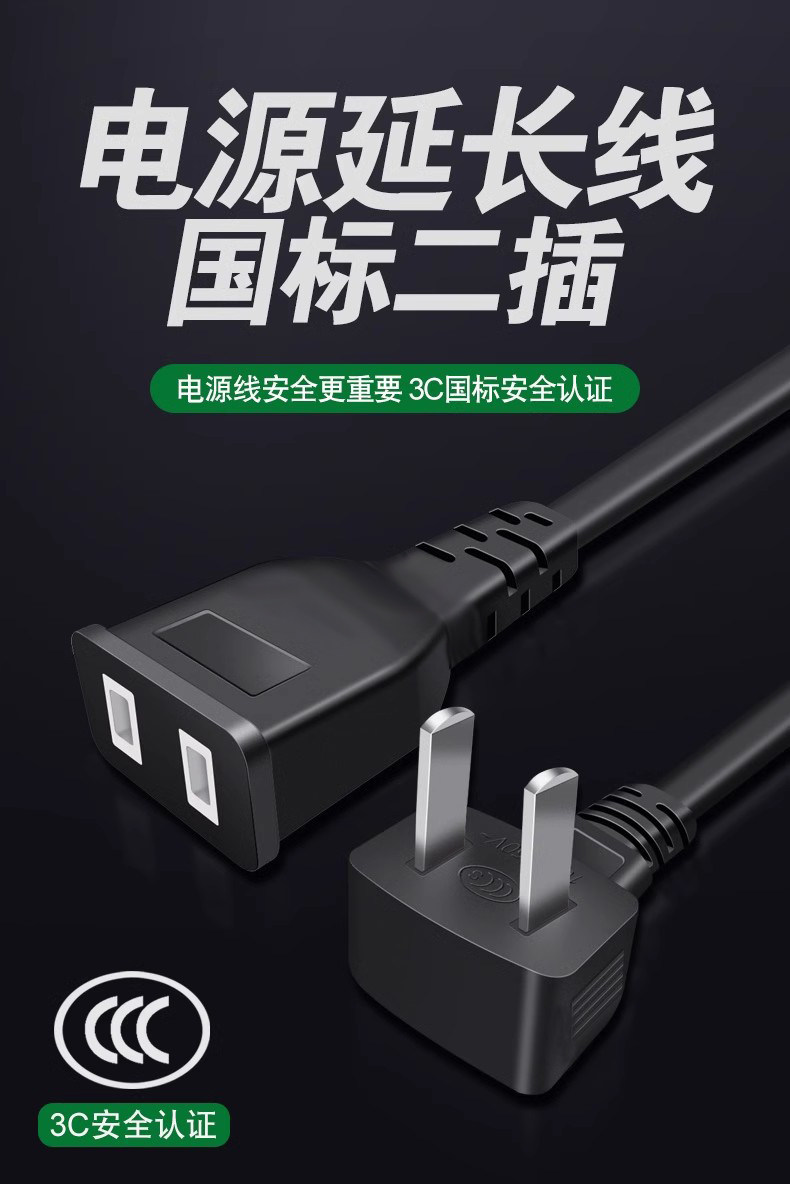 Power Cord Extension Cord Two Holes Two Plugs 2-Core Electric Vehicle Tv Fan Audio High-Power Power Extension Socket