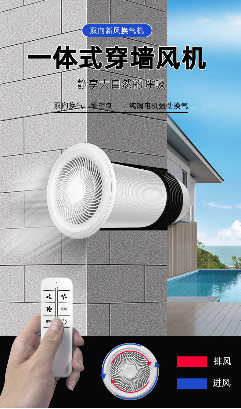 Wall-Mounted Fresh Air Machine, Two-Way Wall-Penetrating Integrated Purifier, Fresh Air System, Bedroom Quiet Home Exhaust Ventilation Fan