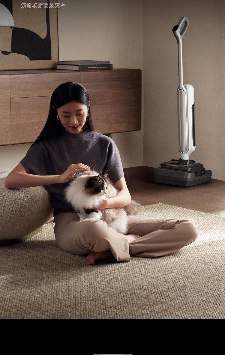 Xiaomi Mijia Wireless Floor Scrubber 4 Pro for Home Use, Strong Suction, Integrated Washing and Drying, Anti-Tangle, Long Battery Life, Efficient Stain Removal