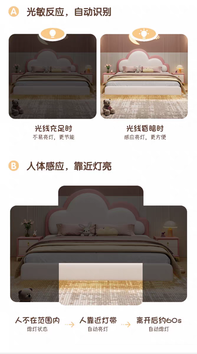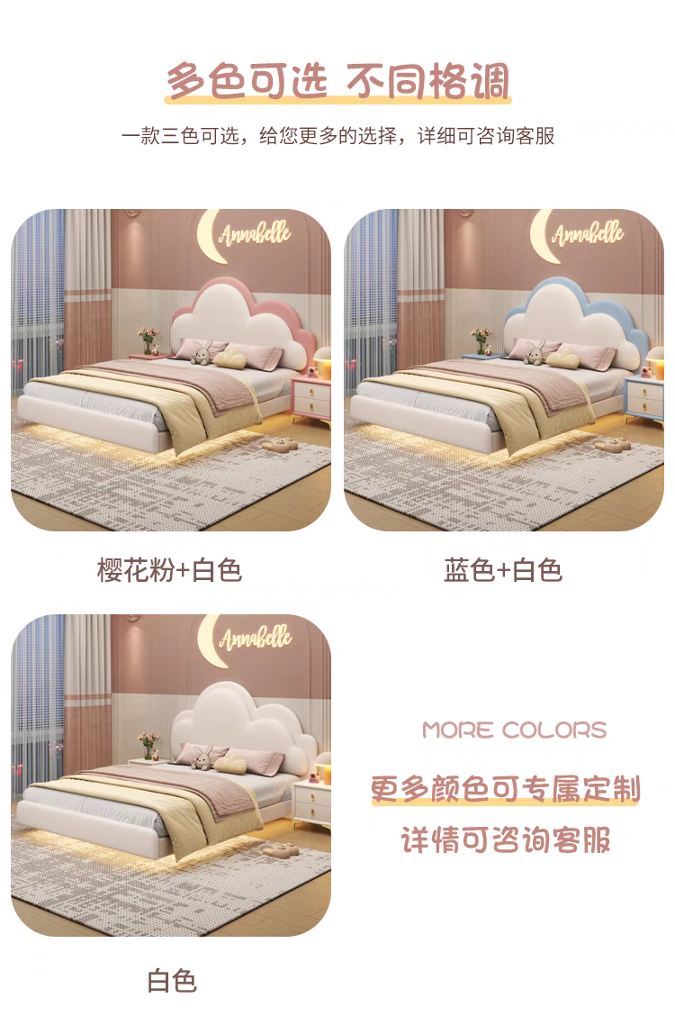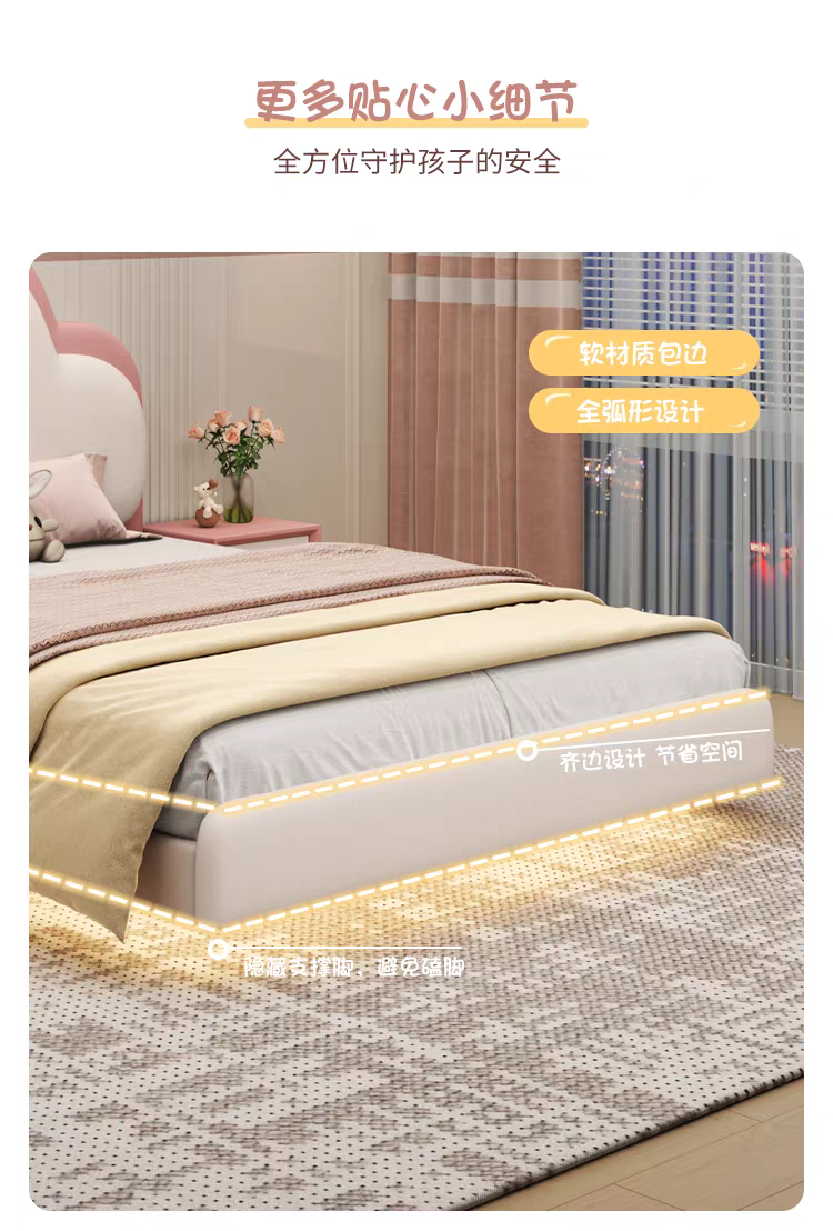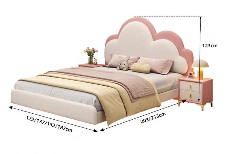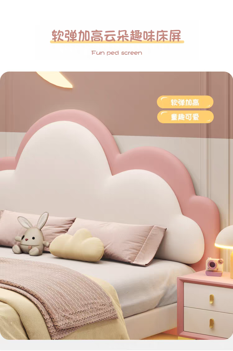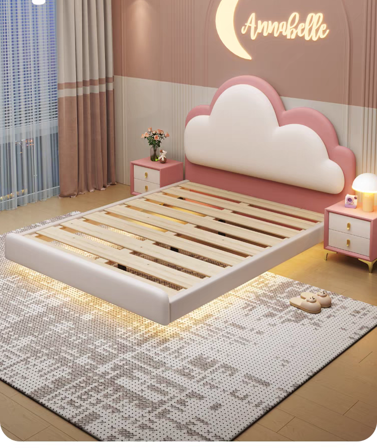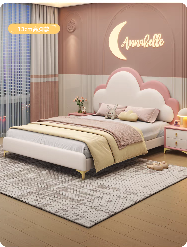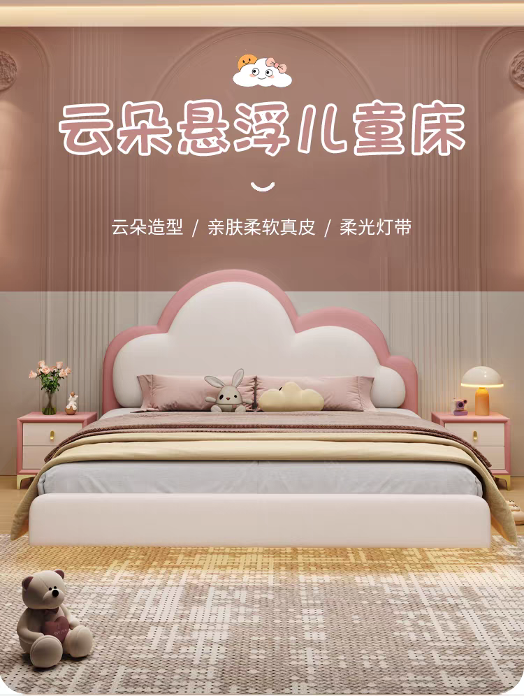 Pink Children's Bed Girl Princess Bed 1.35m Genuine Leather Floating Bed Internet Celebrity Dreamy Girl 1.5m Cloud Bed