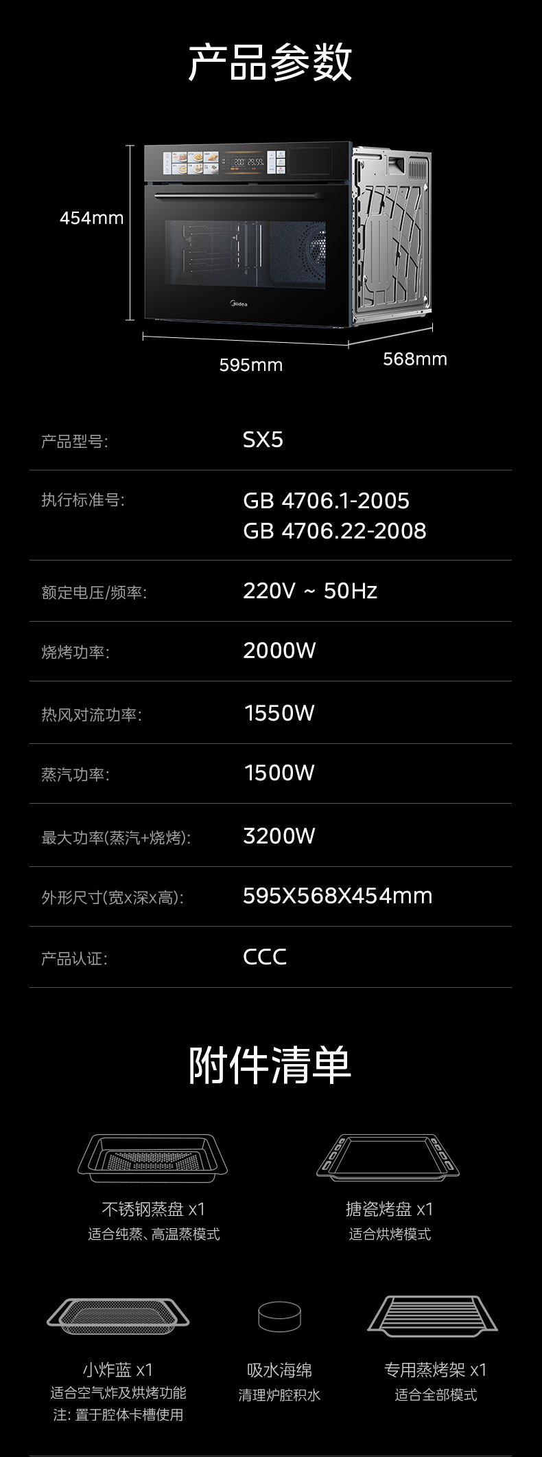 Midea Sx5 Steaming and Baking All-In-One Machine Is a Multi-Functional Household Steaming and Cooking Embedded Electric Steaming Oven