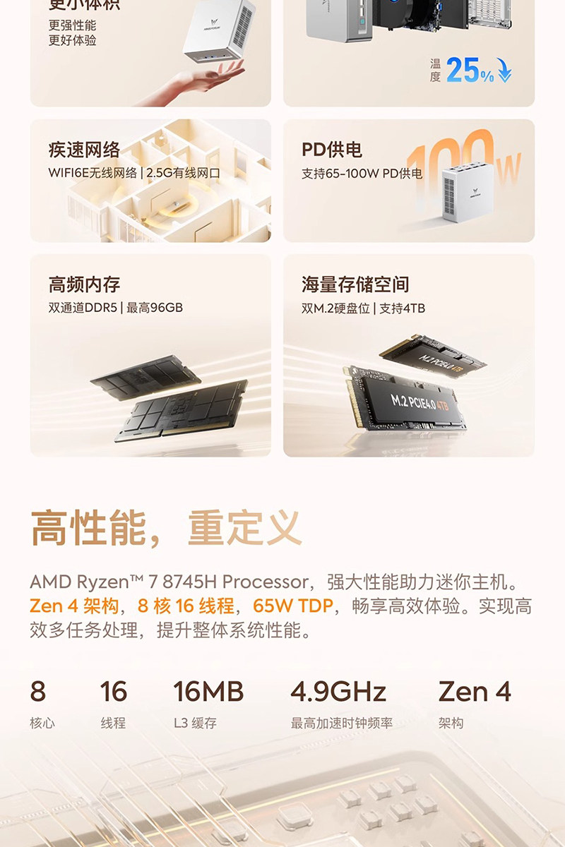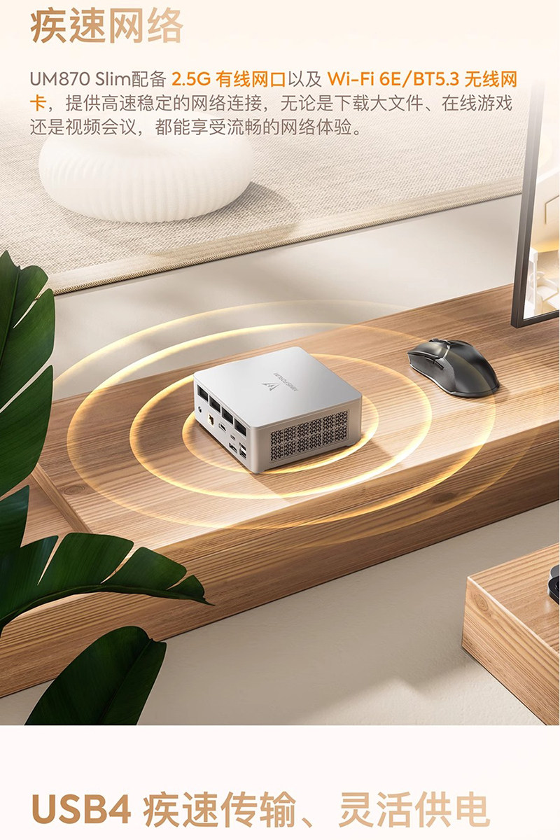 Mingfan Um870/760Slim Amd Ryzen R7-8745H/R5-7640Hs Mini Host Ultra-High Performance Silent Gaming Office Design Desktop Computer Minipc Desktop Computer