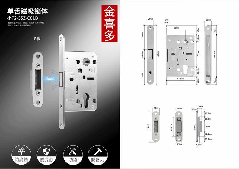 | Latch Bolt Material | Zinc Alloy |