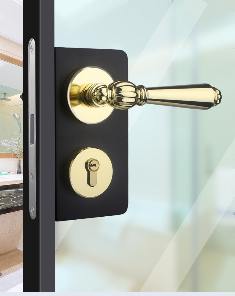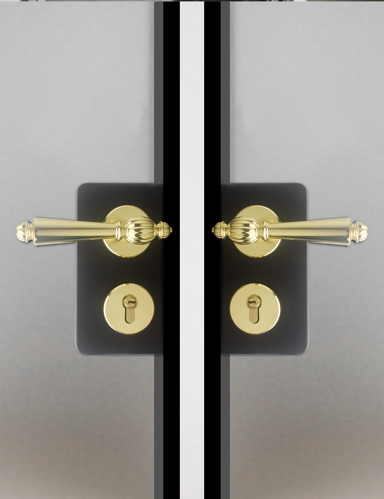 French-Style Retro Extremely Narrow Bathroom Glass Door Lock, European and American Style Indoor Door Gold Silent Magnetic Split Door Lock