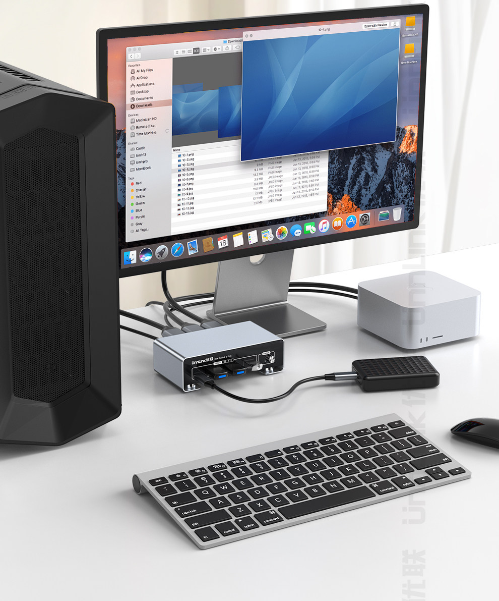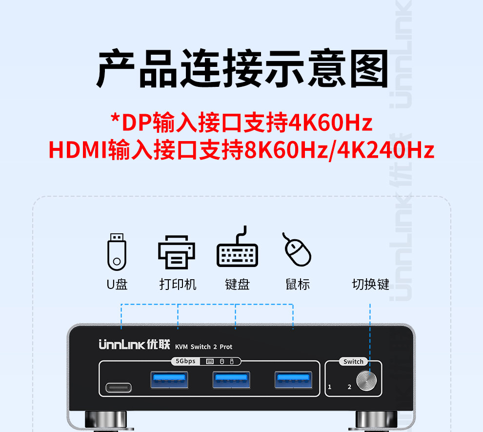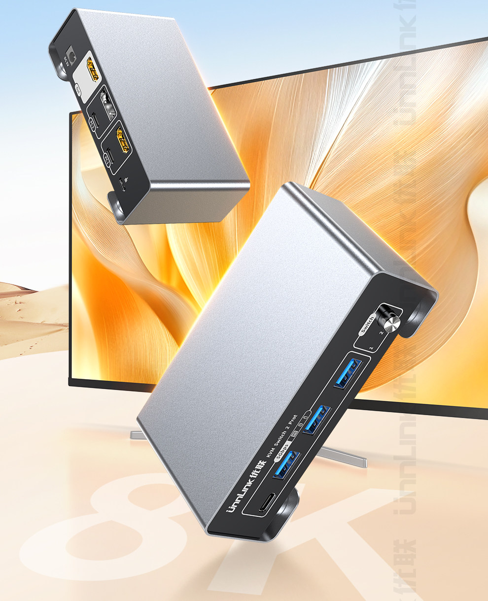 Hdmi+Dp Kvm Switch, Two Inputs and One Output, Two Computers, Mini Host, Laptop, Share a Set of Keyboard, Mouse, Monitor, Printer, USB Flash Drive, 4K240Hz High-Definition, Usb3.0 Sharing