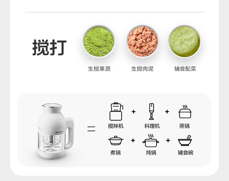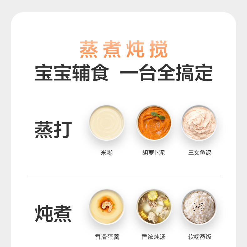 | Color | Food Supplement Machine[Single Cup Single Knife|All-In-One Steaming, Boiling, Stewing, and Mixing],Food Supplement Machine[Double Cups and Double Knives|Vegetable and Meat Separation],Food Supplement Machine[Single Cup Single Knife]+ Stew Pot,Food Supplement Machine[Double Cups and Double Knives]+ Stew Pot |