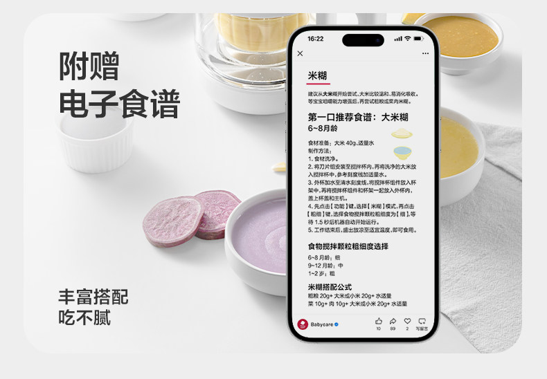 Babycare Baby Food Processor, Rice Paste Maker, Steaming and Cooking All-In-One Multifunctional Food Supplement Tool, Toddler Puree Maker