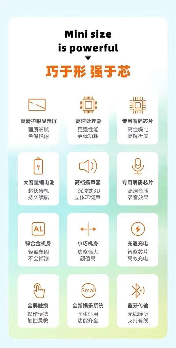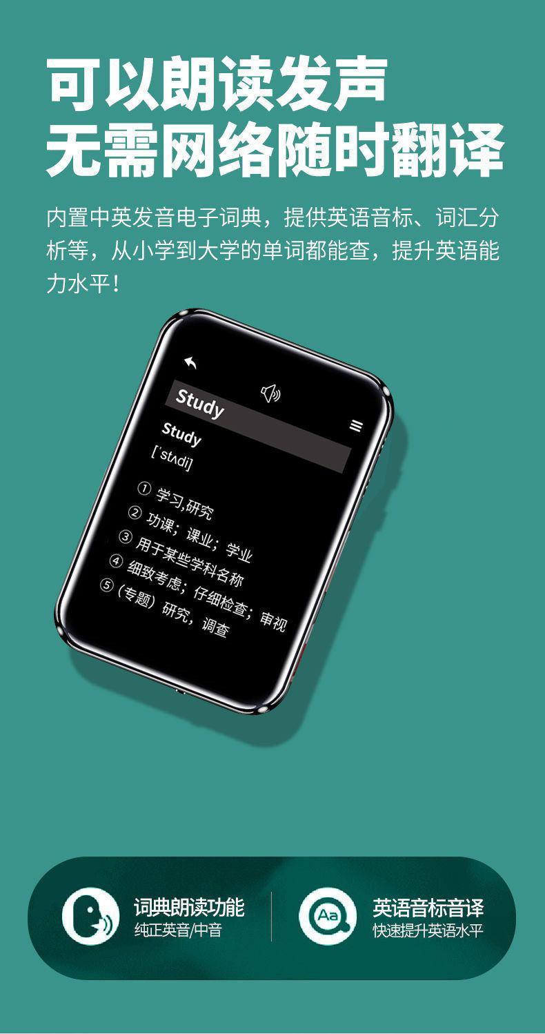 Student Mp4 Mp3 Player with Touch Screen, Full Screen Touch, Bluetooth Player, English Dictionary, Dedicated for Learning