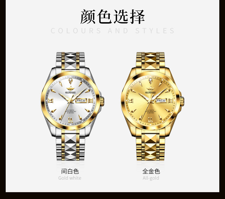 | Color Classification | Oupinke Brand Ambassador: James Wong,Must-See/Benefits of Purchasing the Flagship Version: Upgraded Movement and Improved Stable Performance!,Swiss Certified - White between Steel Bands,Swiss Certification-Steel Belt All Gold,95% of Customers Choose the [Flagship Upgrade] Swiss Certified - White with Steel Band,95% of Customers Choose [Flagship Upgraded Version] Swiss Certification - All Gold Steel Band |