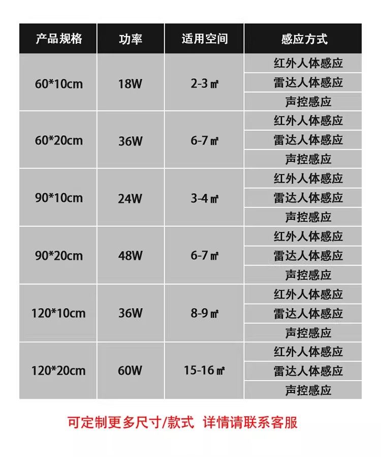 | Color Classification | 60-10Cm-18W-Infrared Human Body Sensor,60-10Cm-18W-Thunder Master Sensing,60-10Cm-18W-Voice Control Sensor,60-20Cm-36W-Infrared Human Body Sensor,60-20Cm-36W-Laren Somatosensory Sensor,60-20Cm-36W-Voice Control Sensor,90-10Cm-24W-Infrared Human Body Sensor,90-10Cm-24W-Thunder Master Sensing,90-10Cm-24W-Voice Control Sensor,90-20Cm-36W-Infrared Human Body Sensor,90-20Cm-36W-Laren Somatosensory Sensor,90-20Cm-36W-Voice Control Sensor,120-10Cm-36W-Infrared Human Body Sensor,120-10Cm-36W-Radar Sensor,120-10Cm-36W-Voice Control Sensor,120-20Cm-48W-Infrared Human Body Sensor,120-20Cm-48W-Thunder Desert Sensation,120-20Cm-48W-Voice Control Sensor,Other Specifications |