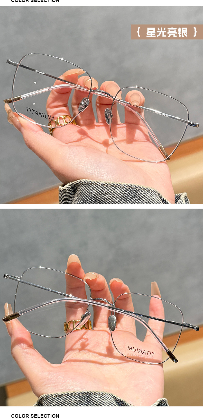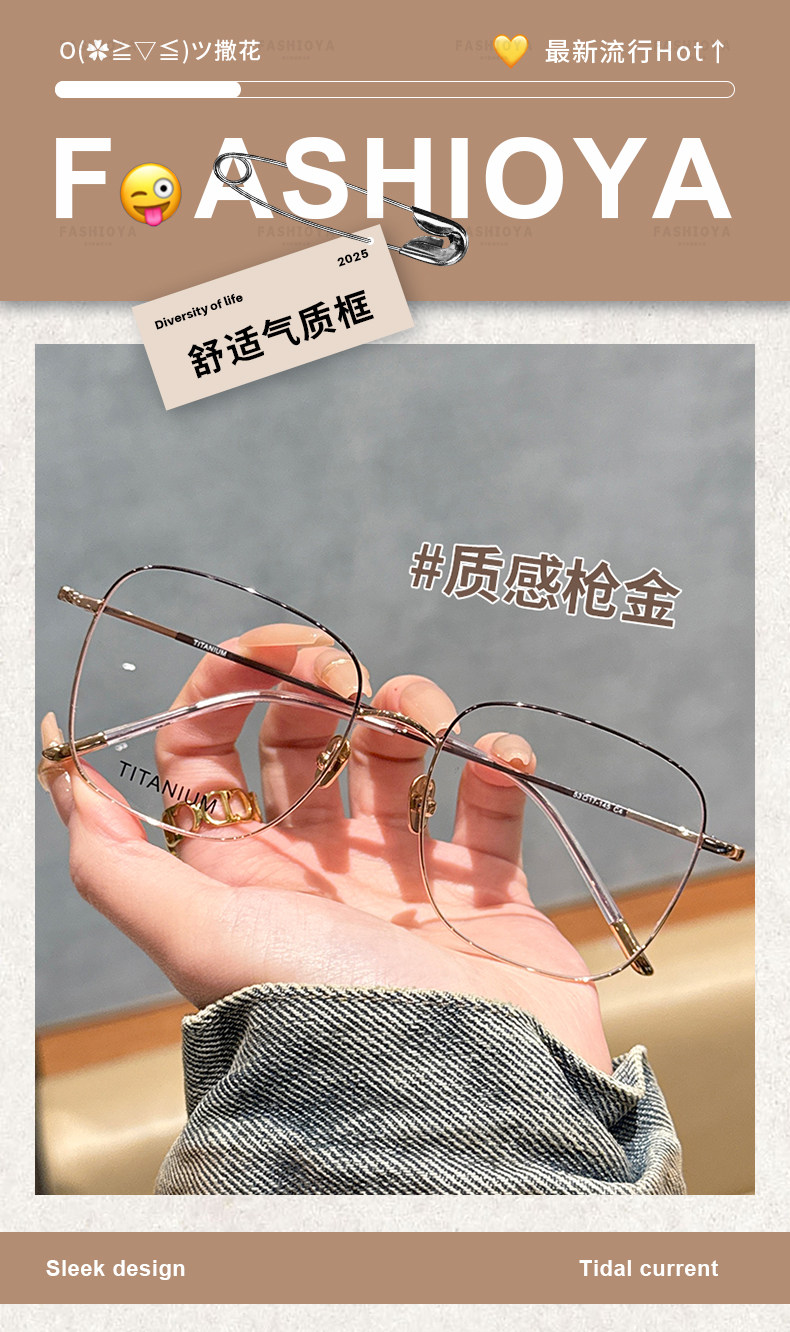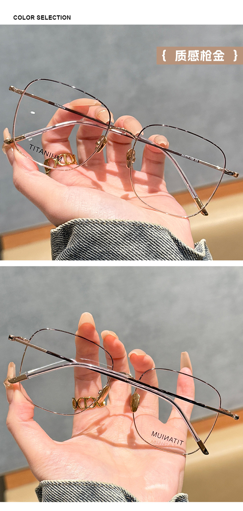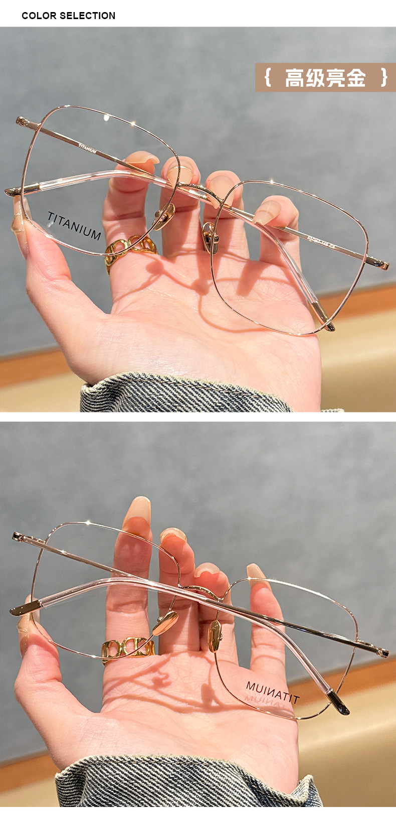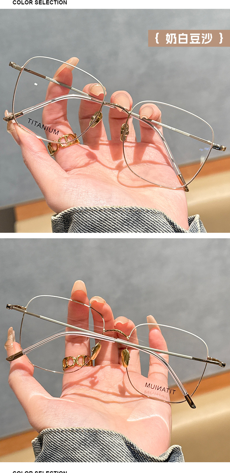 | Color Classification | Titanium Frame-Texture Gun Gold C4,Titanium Frame-Milk White Bean Paste C6,Titanium Frame-Starlight Bright Silver C2,Titanium Frame-Lazy Black Gold C7,Titanium Frame-High-Grade Bright Gold C3,Titanium Frame-Temperament Yahei C1 |