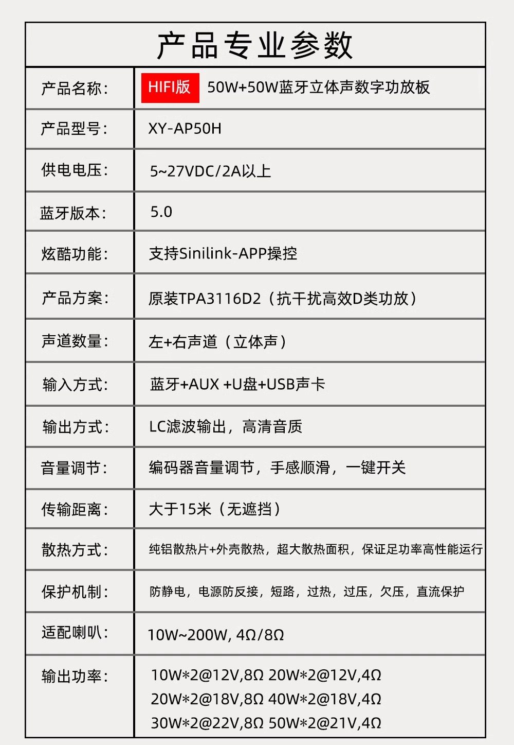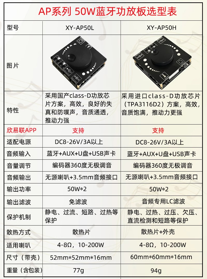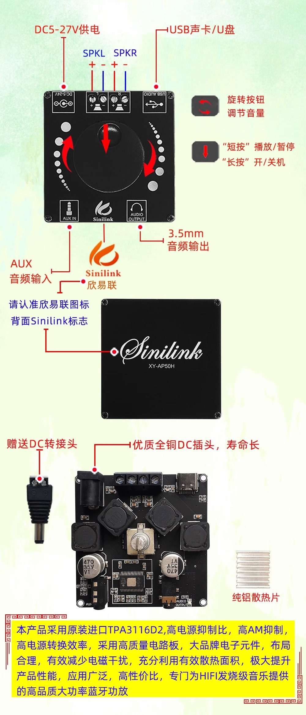 Hifi Audiophile-Grade 2.0 Stereo Bluetooth Digital Amplifier Board 50Wx2 Speaker Audio Amplifier Xy-Ap50H