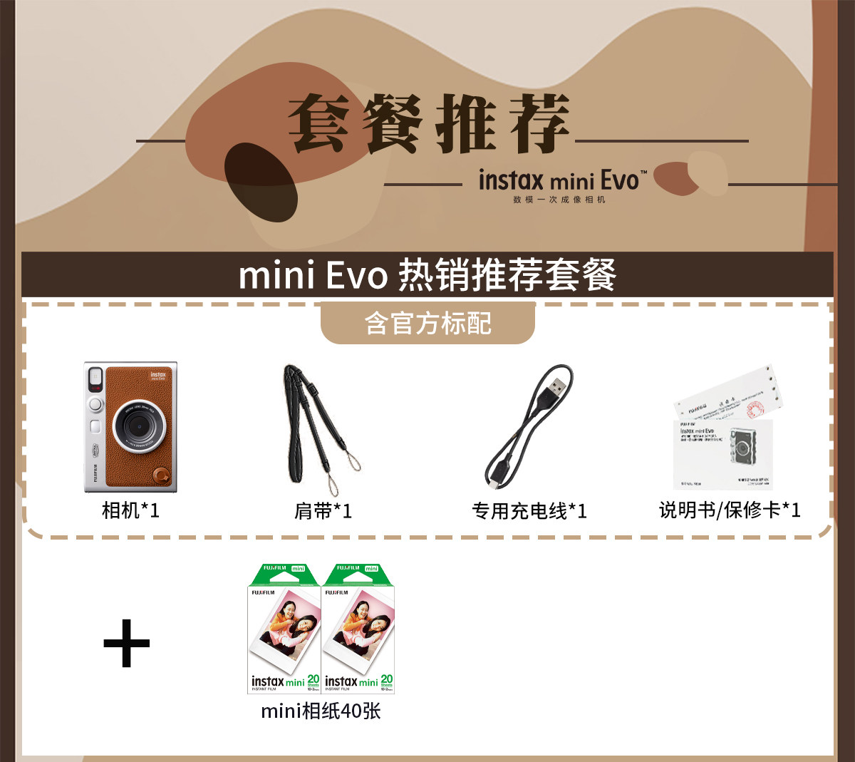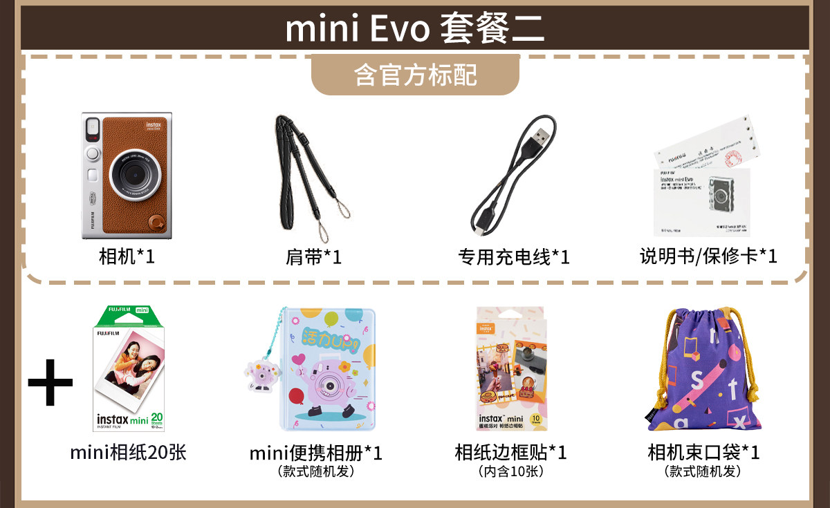 | Package Type | Official Standard,Set 1: Official Standard + 20 Sheets of Photo Paper,Set 2: Official Standard Configuration + 20 Sheets of Photo Paper + Recommended Peripherals,Set 3: Official Standard Configuration + 20 Sheets of Photo Paper + Shoulder Strap + Lens Cap + Keychain,Set Four: Standard Official Configuration + 20 Sheets of Photo Paper + Vintage Diamond Pattern Camera Bag,Set 5: Official Standard Configuration + 20 Sheets of Photo Paper + Brand Fill Light,Hot-Selling Recommended Package: Official Standard + 40 Sheets of Photo Paper,Mini Evo Warm Rose Gift Box Set (Includes 10 Sheets of Photo Paper),Package 1: Evo Warm Rose Gift Box Standard + Magnetic Fill Light Pink |