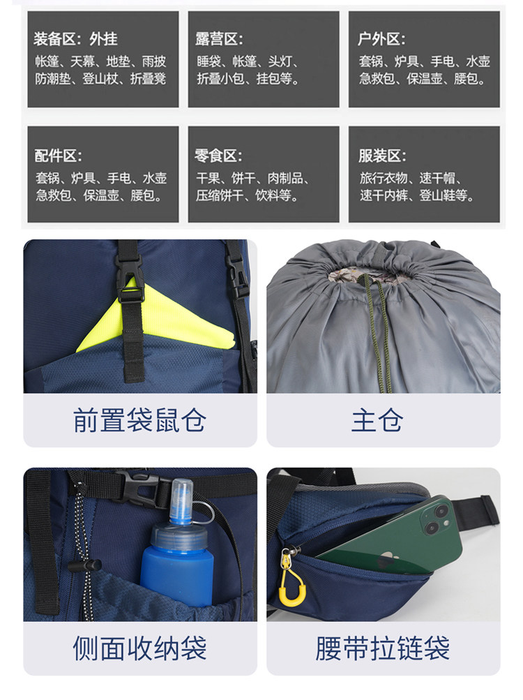 2025 Outdoor Multifunctional Mountaineering Bag 60+5 Liters Camping Tent Hiking Backpack Large Capacity