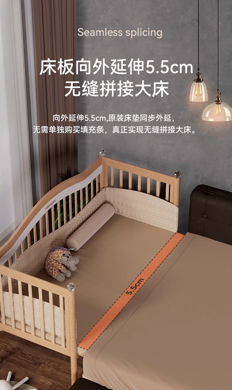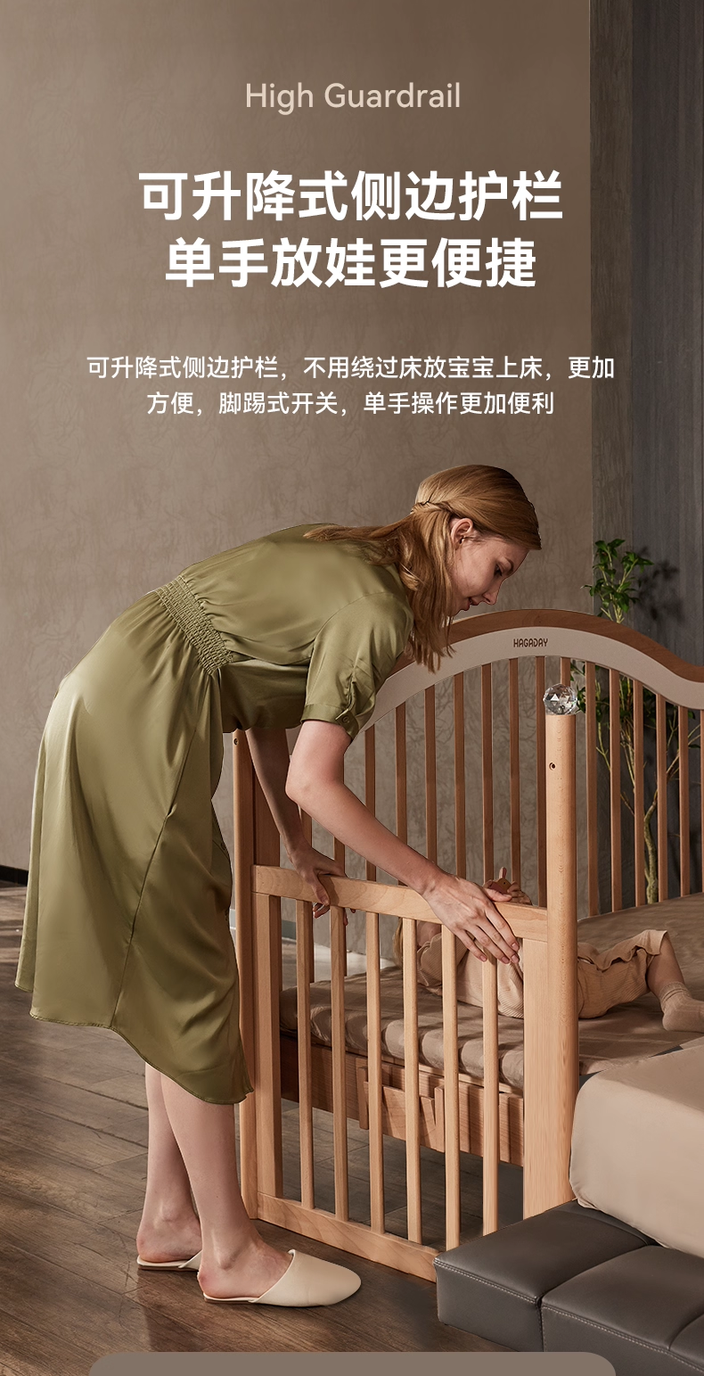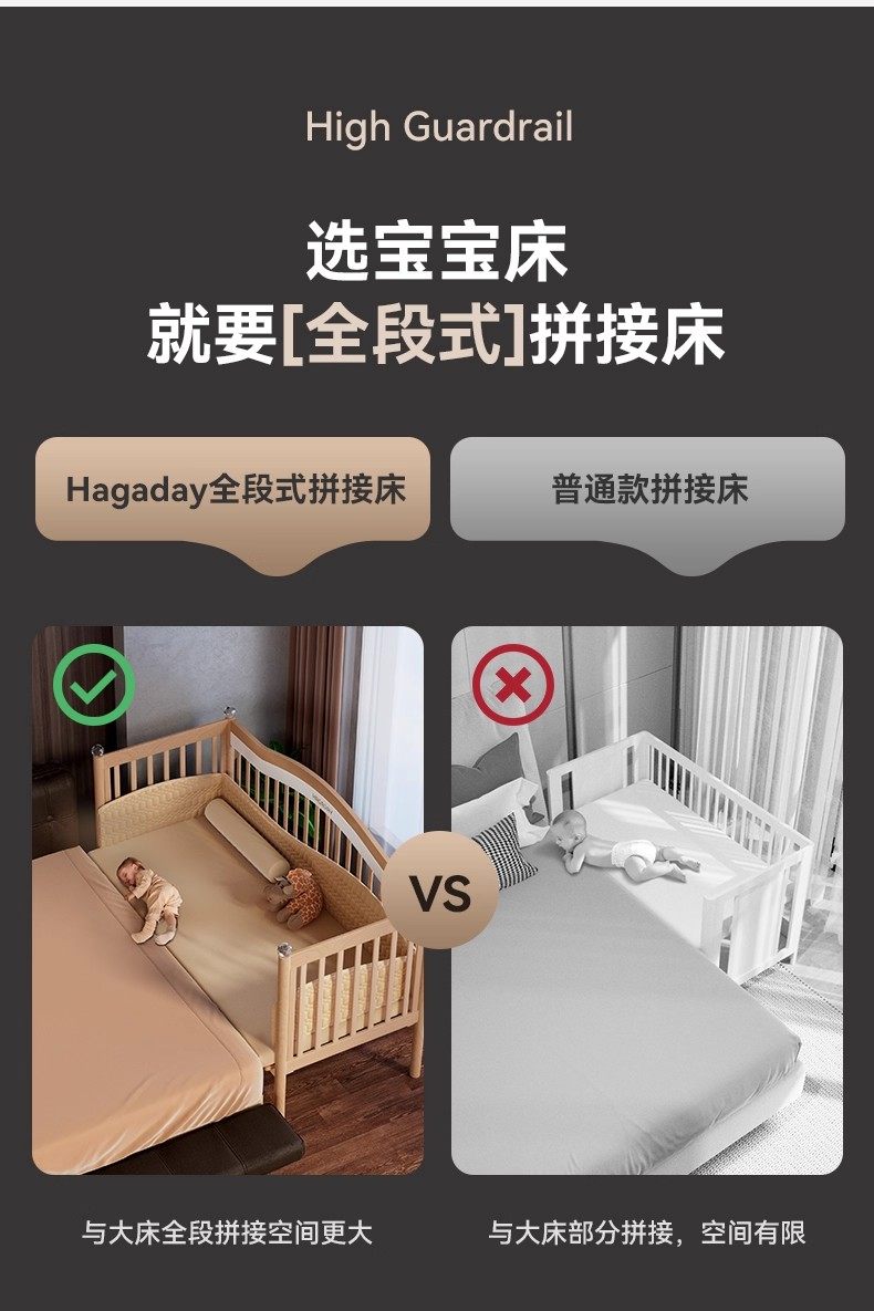 Hagaday Hakada Baby Crib with Widened Sides, Children's Solid Wood Crib, Large Bed Widening Tool