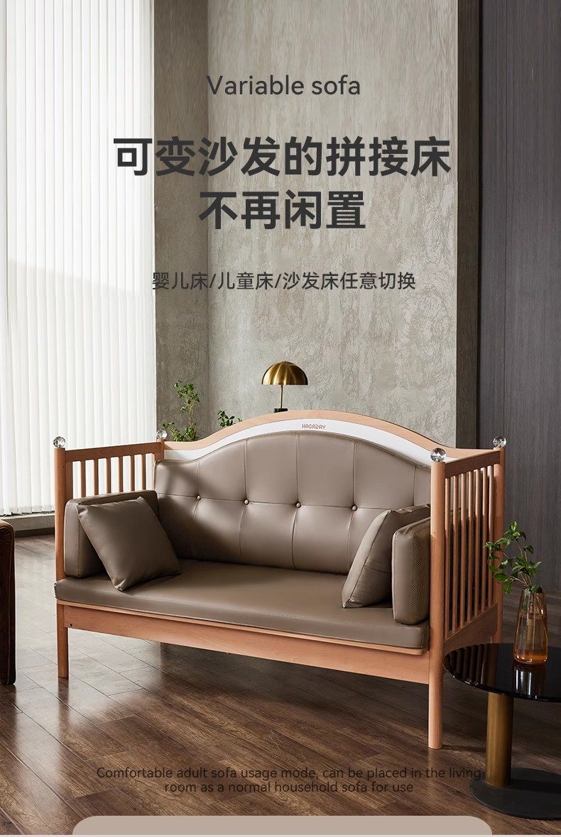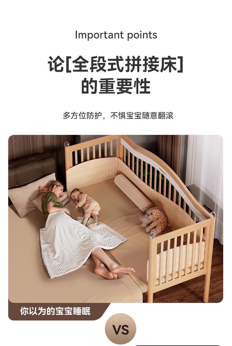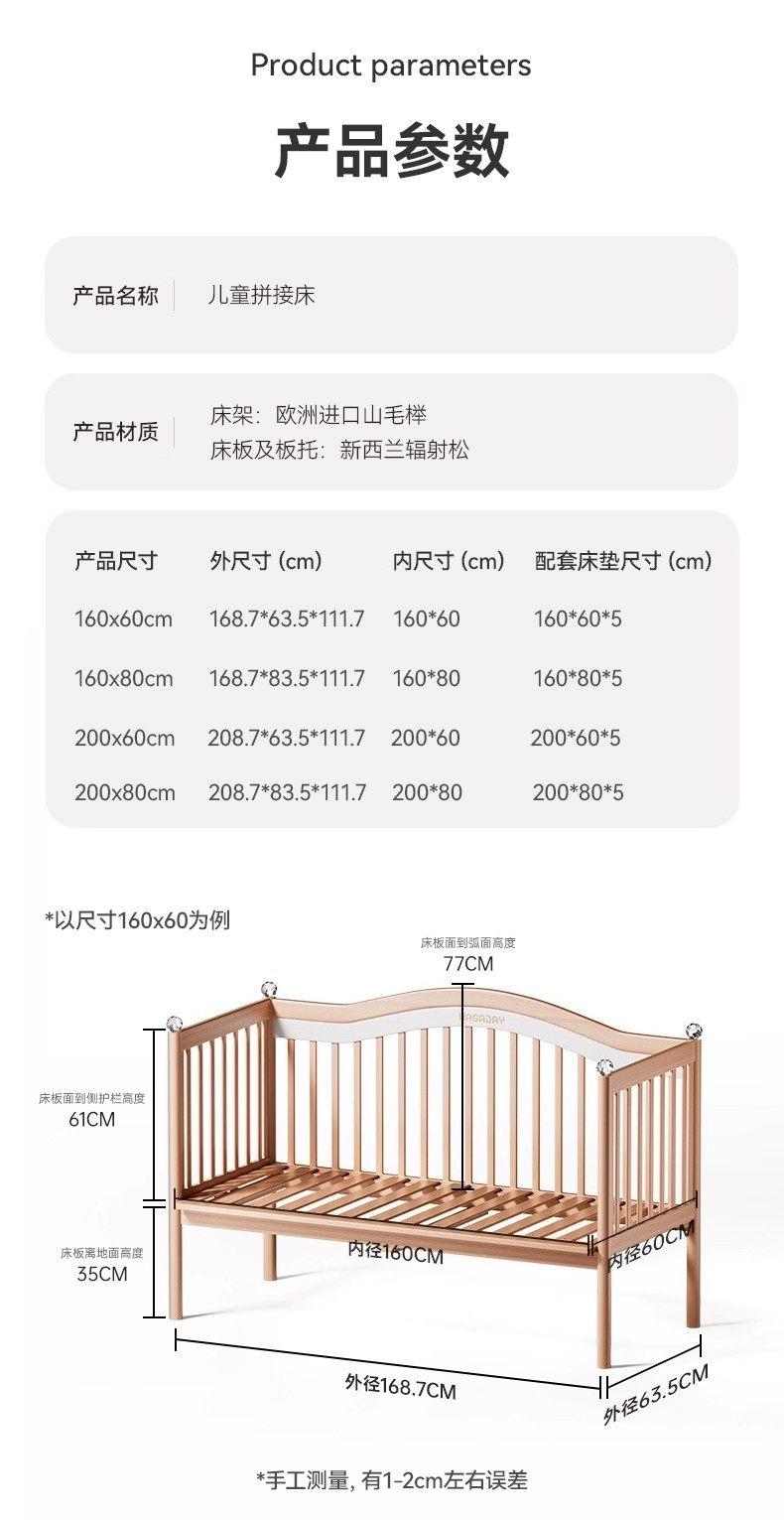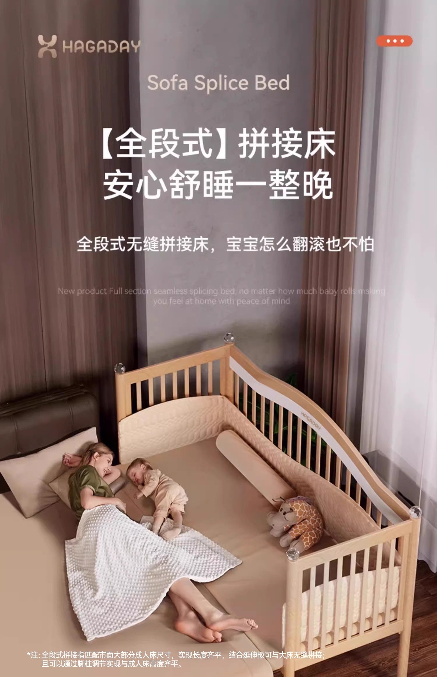 Hagaday Hakada Baby Crib with Widened Sides, Children's Solid Wood Crib, Large Bed Widening Tool
