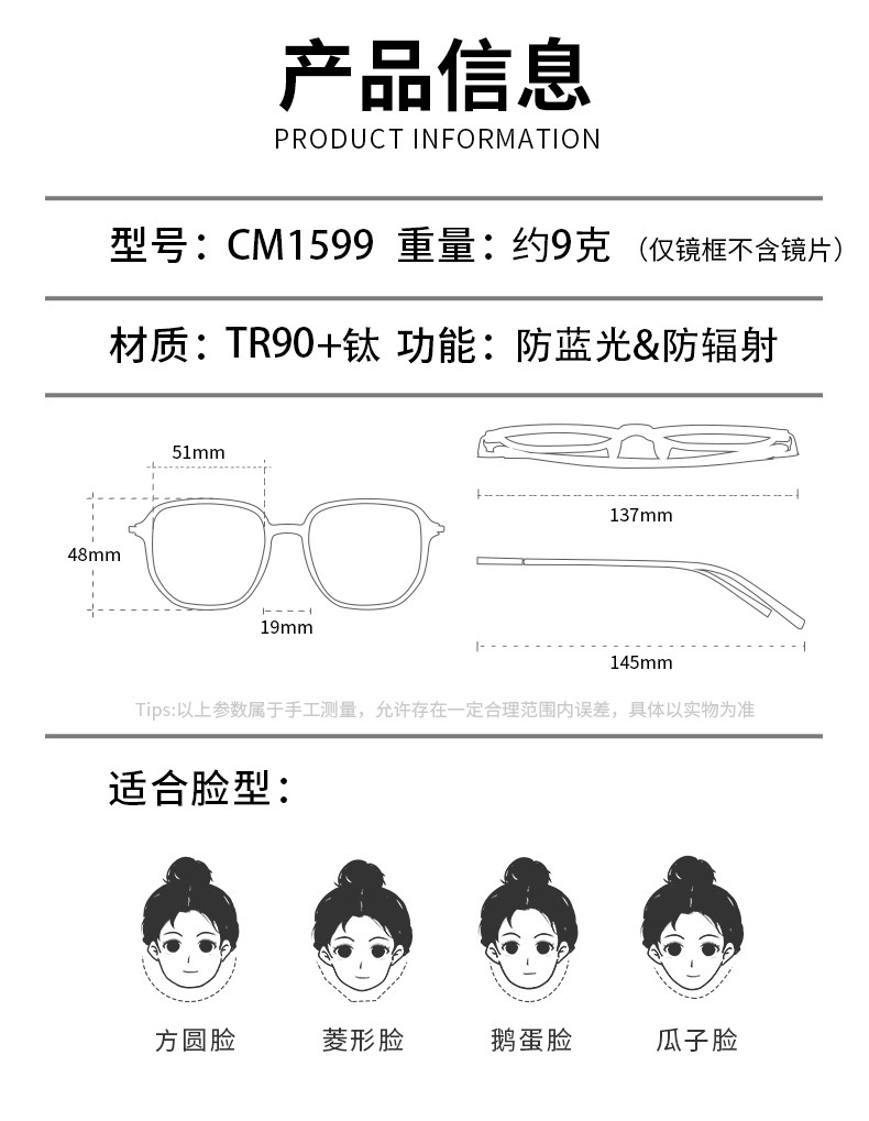 | Color Classification | Titanium Frame-White Olive C9,Titanium Frame-White Cold Tea C6,Titanium Frame - Chestnut Milk Tea C5,Titanium Frame-Korean Transparent Gray C4,Titanium Frame-Temperament Black Silver C2,Titanium Frame - Ink Stone Green C7 |