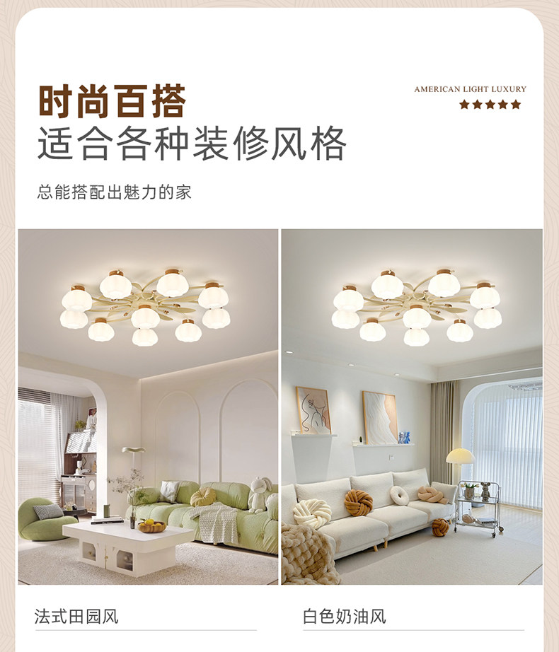 Nvc Lighting Cream Style Full Spectrum Eye Protection Restaurant Ceiling Lamp Chandelier Bar Bedroom Study Room Natural Wood Style Lighting Fixtures