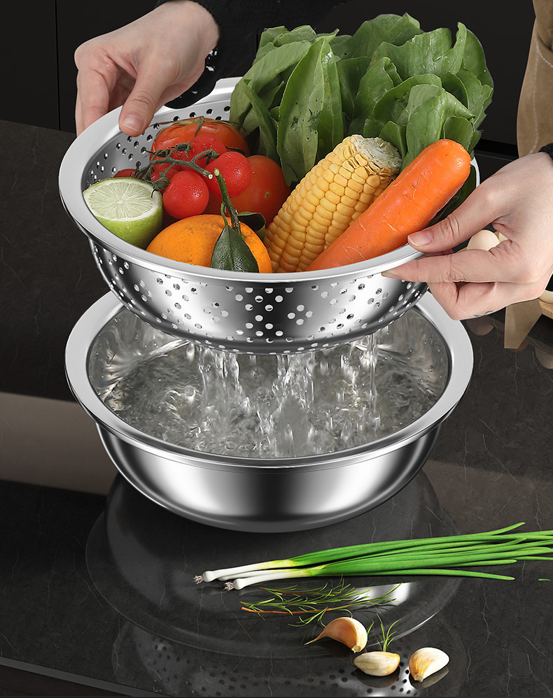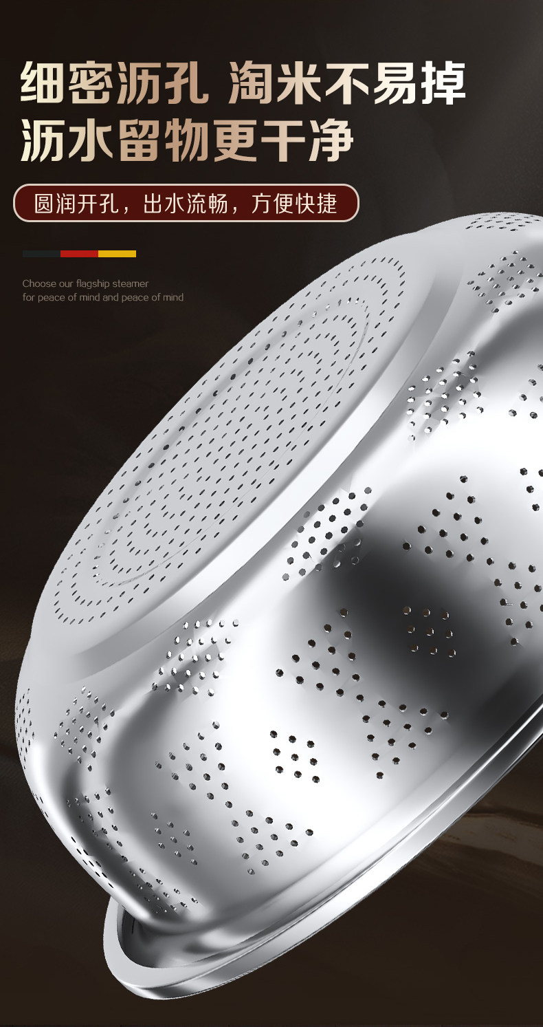 Stainless Steel Extra Large Leaky Basin Solid Basin Drain Basket Kitchen Rice Washing Vegetable Artifact Basin Rice Washing Sieve Household Fruit Basket