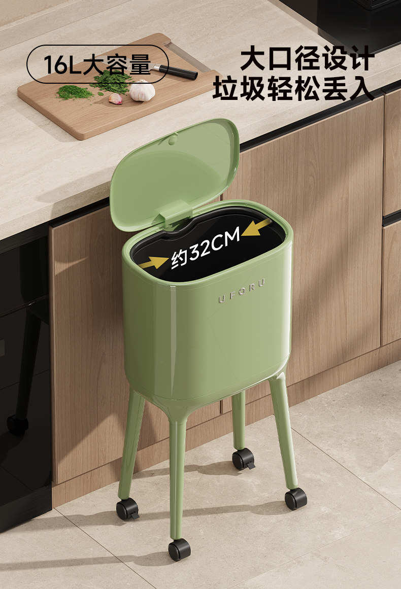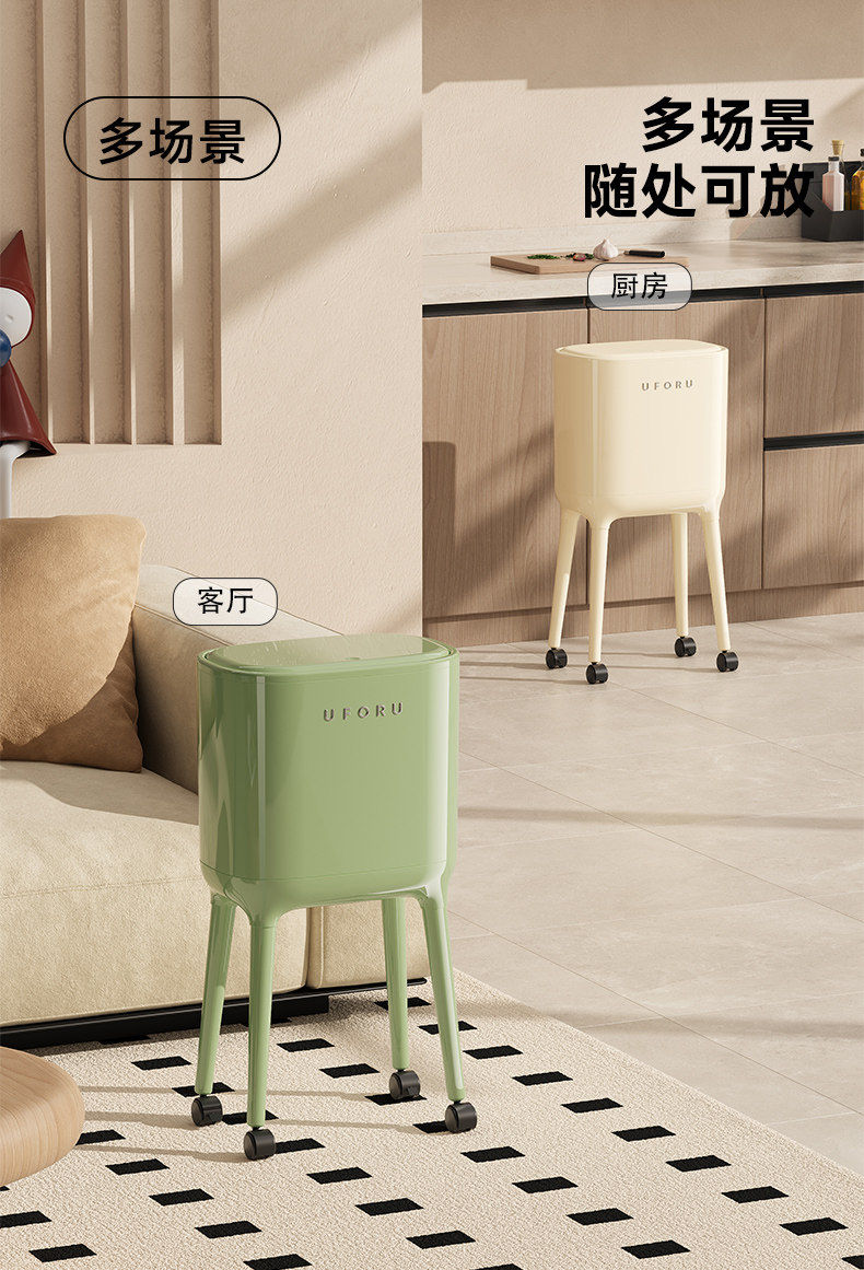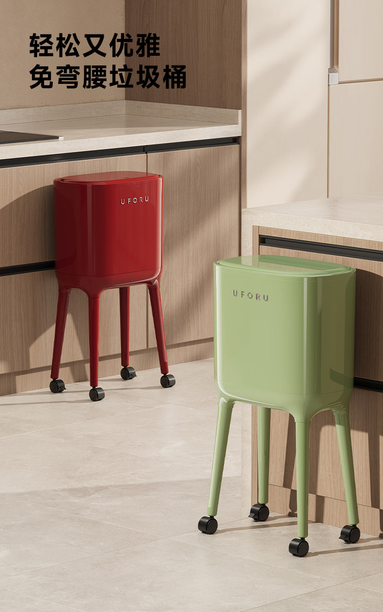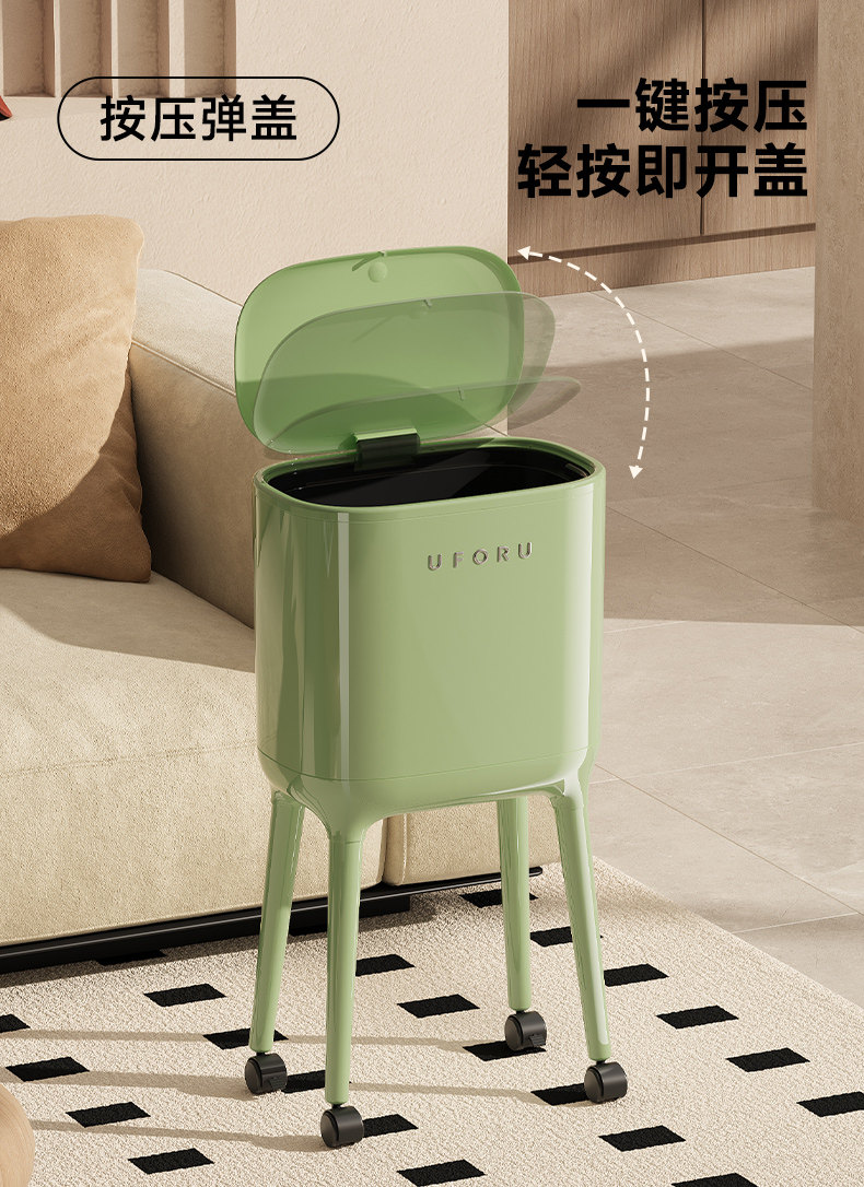 Trash Can for Home Use 2025 New Model Indoor Living Room Kitchen Dedicated No Bending Required Movable with Wheels High-Legged with Lid
