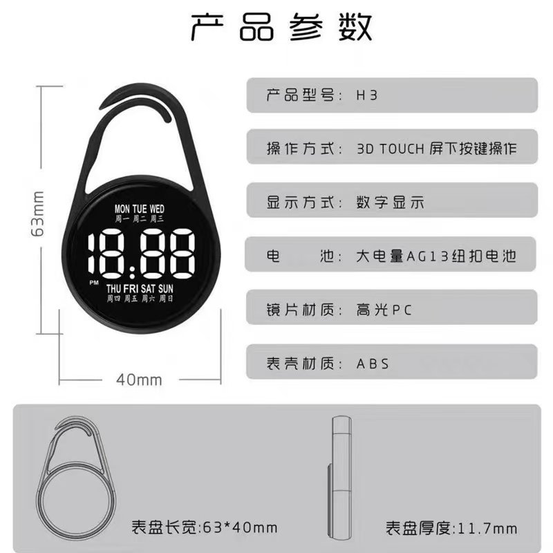 Waterproof Touch Screen with Week and Night Light Display Student Water Drop Pocket Watch Pendant Watch High-Definition Digital Hanging Electronic Watch