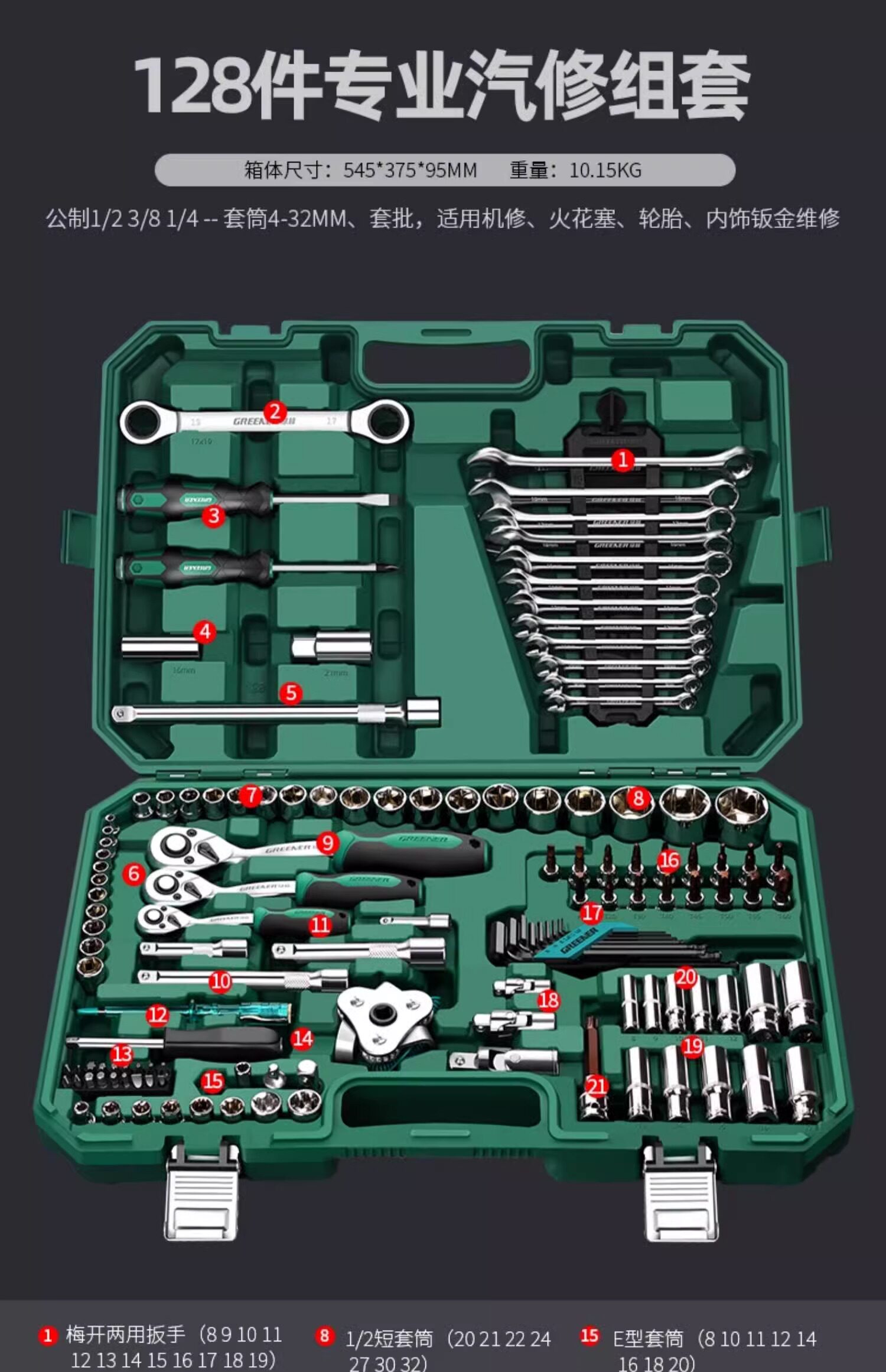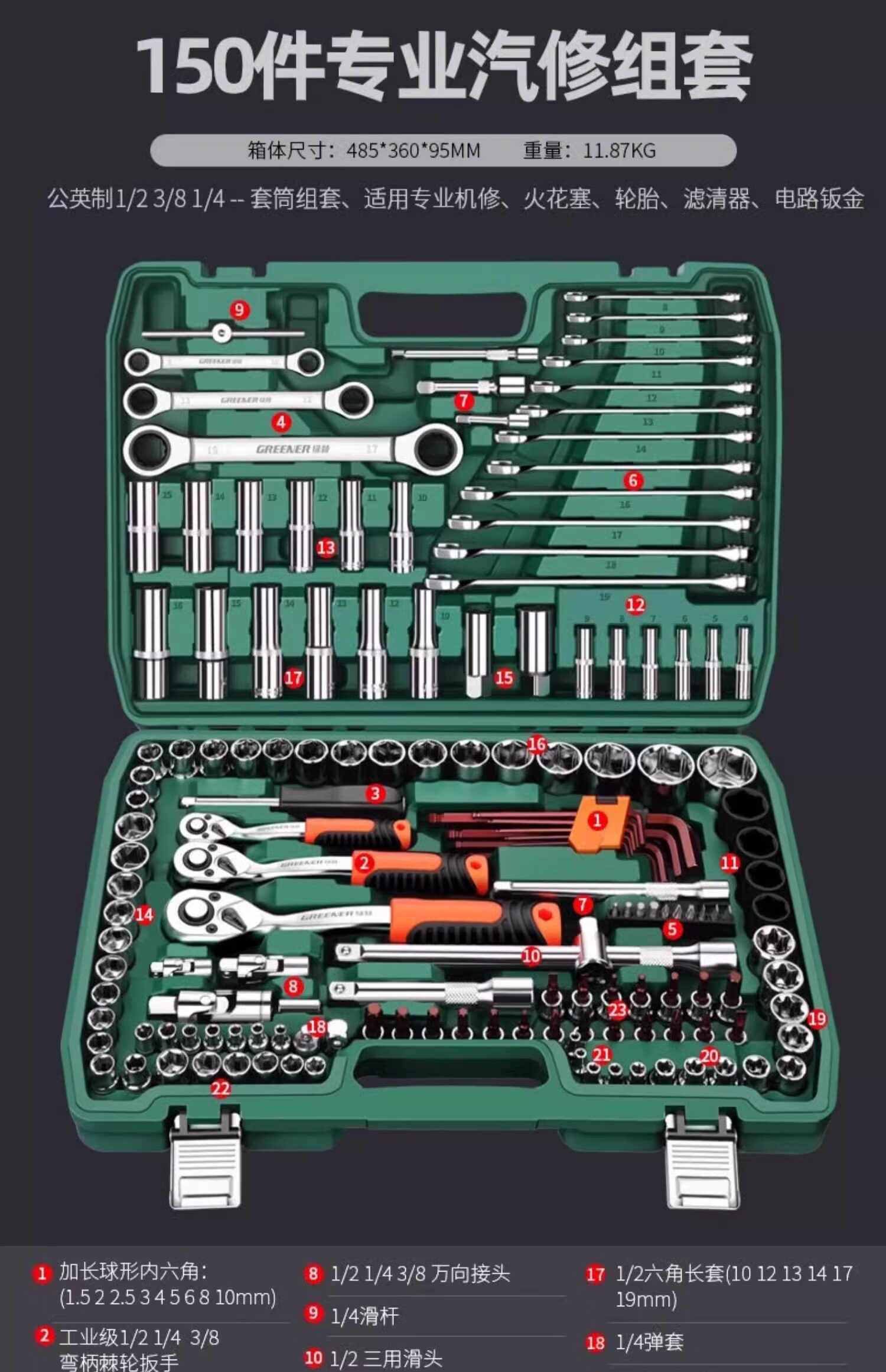 Green Forest 150-Piece Socket Combination Set Ratchet Wrench Auto Repair Tool Box Maintenance Special Car Tool Kit