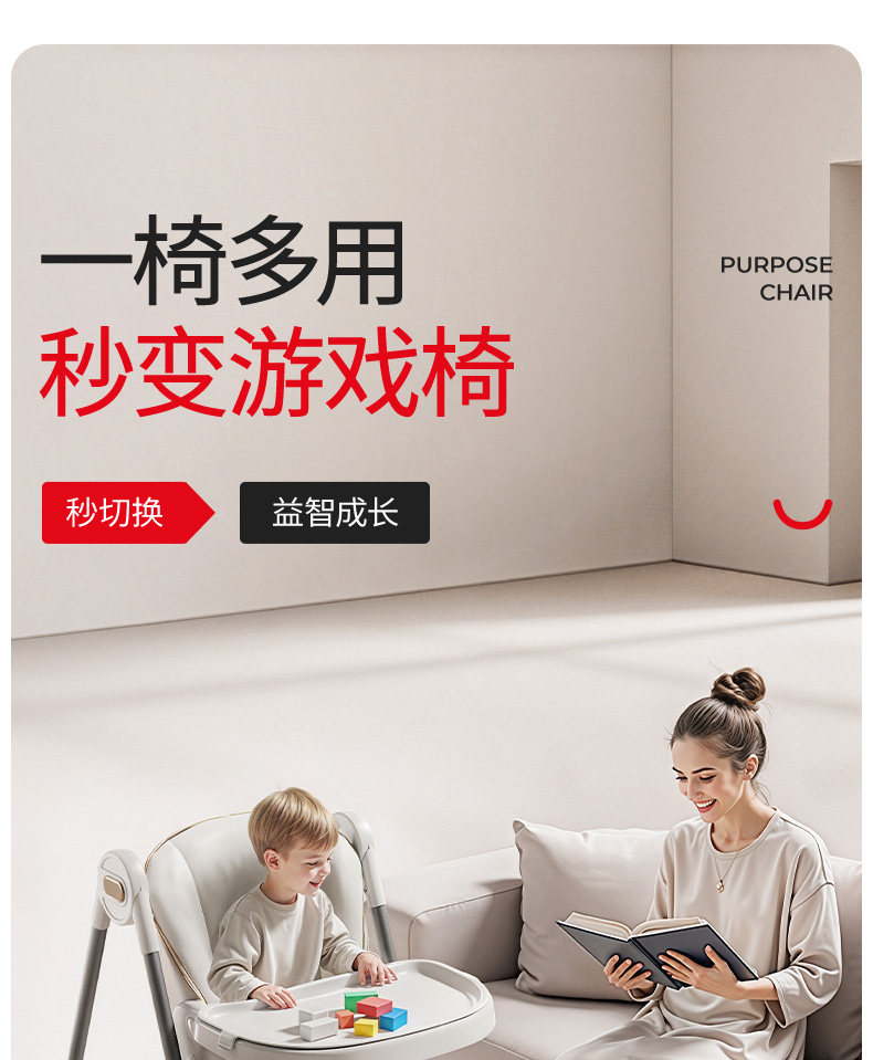 Babyto Baby High Chair, Infant Dining Chair, Home Use Children's Eating Chair, Can Sit and Lie Down, Two-In-One Multifunctional Learning Chair