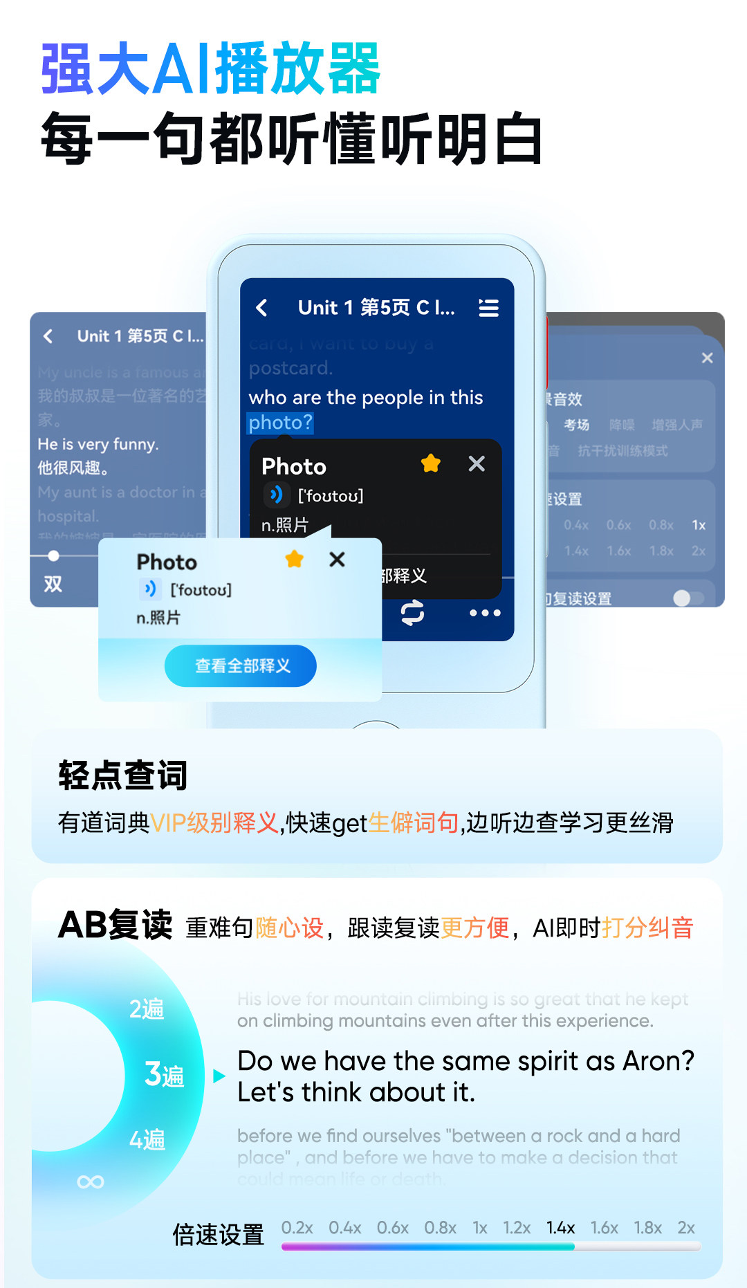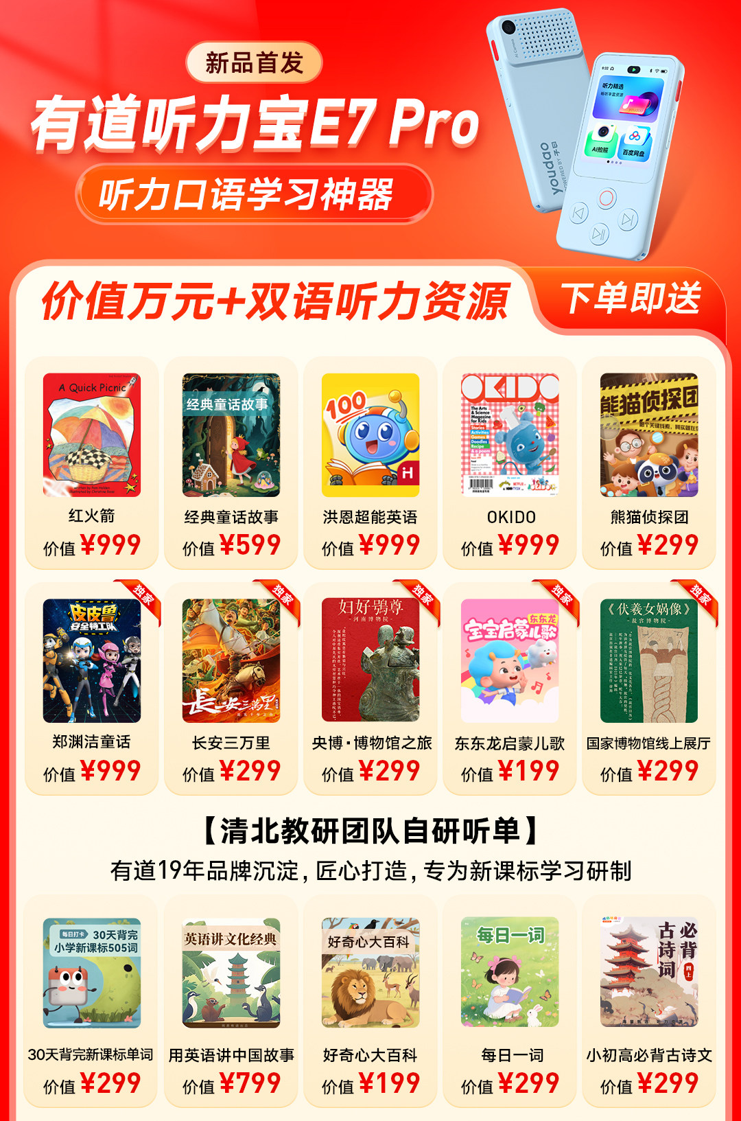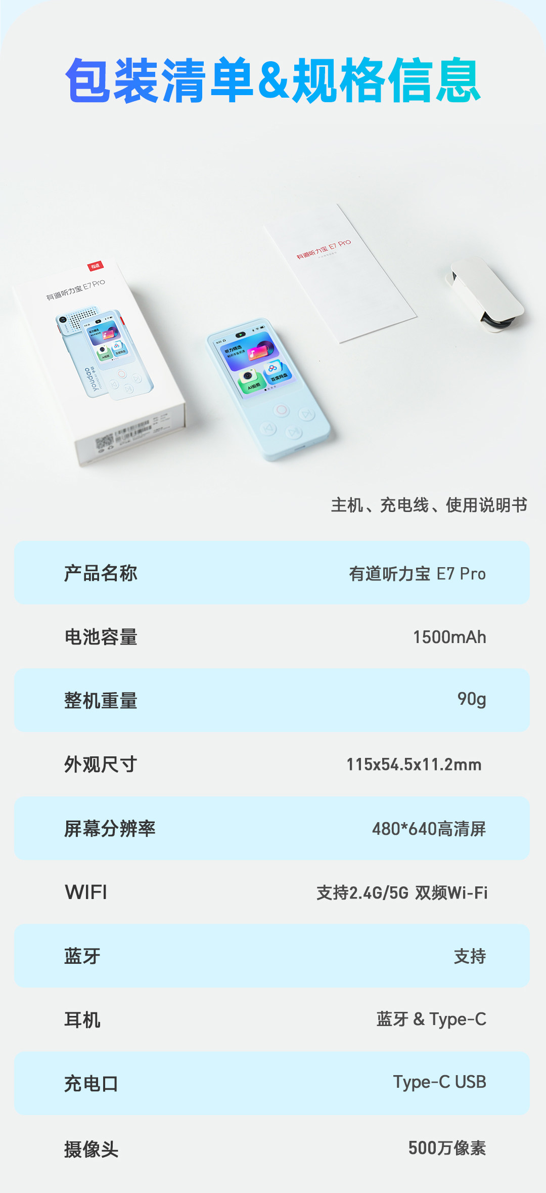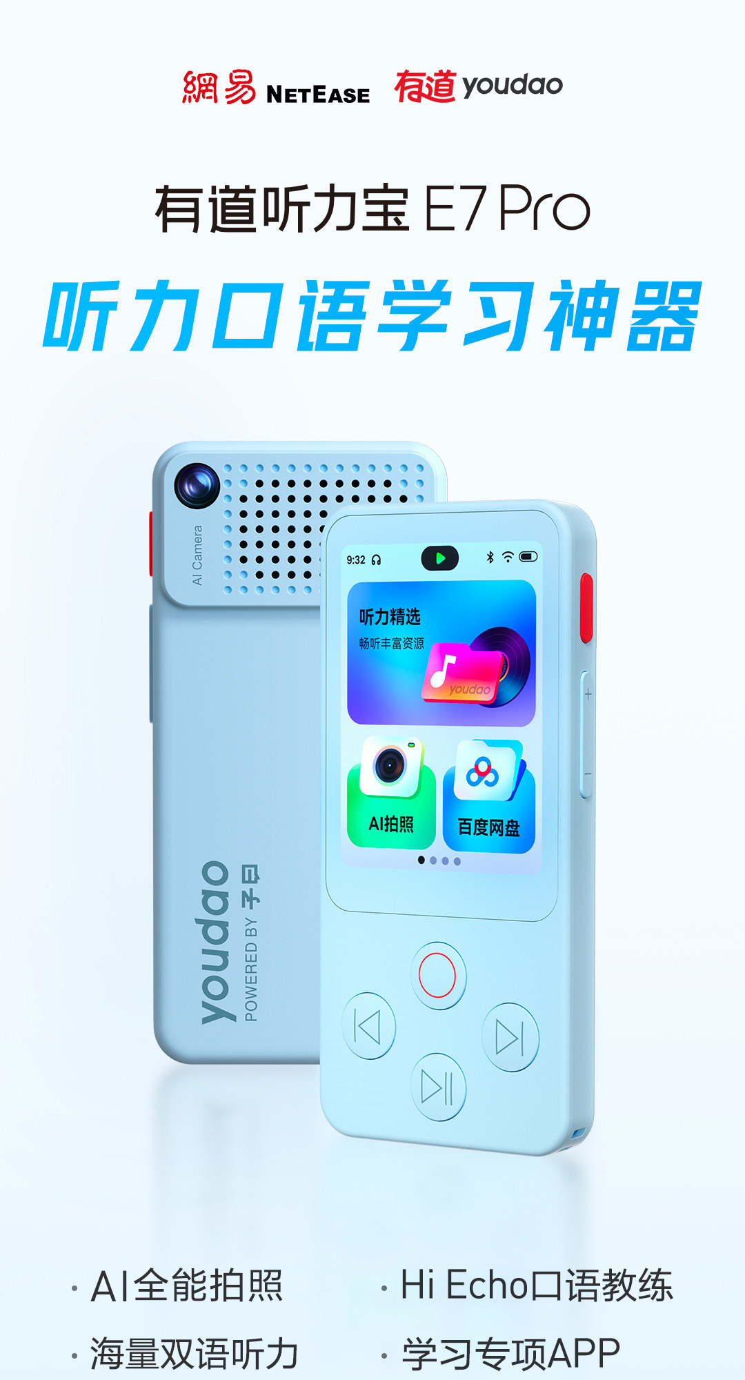 Netease Youdao Listening Device E7Pro/E6Pro Repeater, Ear Training Tool, Portable English Listening Device, Listening Player, Special Learning Device for Primary, Middle, and High School Students, Official official store